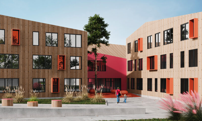 Ще один знаковий кейс IK-architects в Україні — започаткований у 2022 році соціально відповідальний проєкт VILNA School. Зокрема, йдеться про реновацію зруйнованого російською ракетою ліцею №47 у Харкові на вулиці Космонавтів — наразі будівля потребує не просто відновлення, а кардинальної перебудови. Крім ліцею №47, до програми VILNA School також долучено чимало інших навчальних закладів. Деякі з проєктів ведуть лише локальні архітектори, а деякі реалізуються спільно із зарубіжними партнерами.