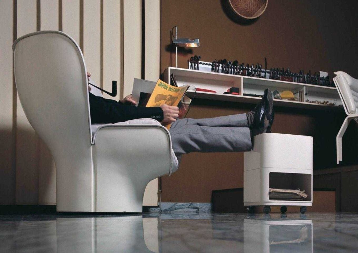 Пік творчості Джо Коломбо припав на 60-ті, коли людство підкорювало космос, розробляло новітні технології та матеріали. Здавалося, грандіозне майбутнє ось-ось настане. Джо вже тоді вважав, що воно за інноваціями. «Спосіб життя людей завдяки новим аудіо- та відеодосягненням зміниться абсолютно. Люди зможуть вчитися та працювати вдома. Відстань у майбутньому не матиме вирішального значення».