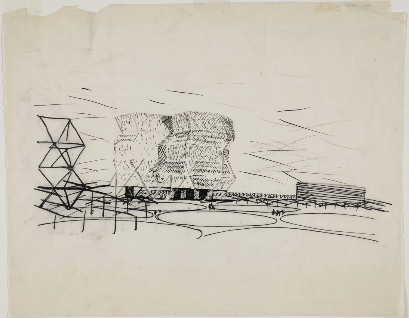 Луис Кан. Эскиз проекта высотной башни City Tower, чернила, карандаш, калька, 1952-1953 гг. Экспонат музея MoMA в Нью-Йорке. © 2019 Estate of Louis I. Kahn