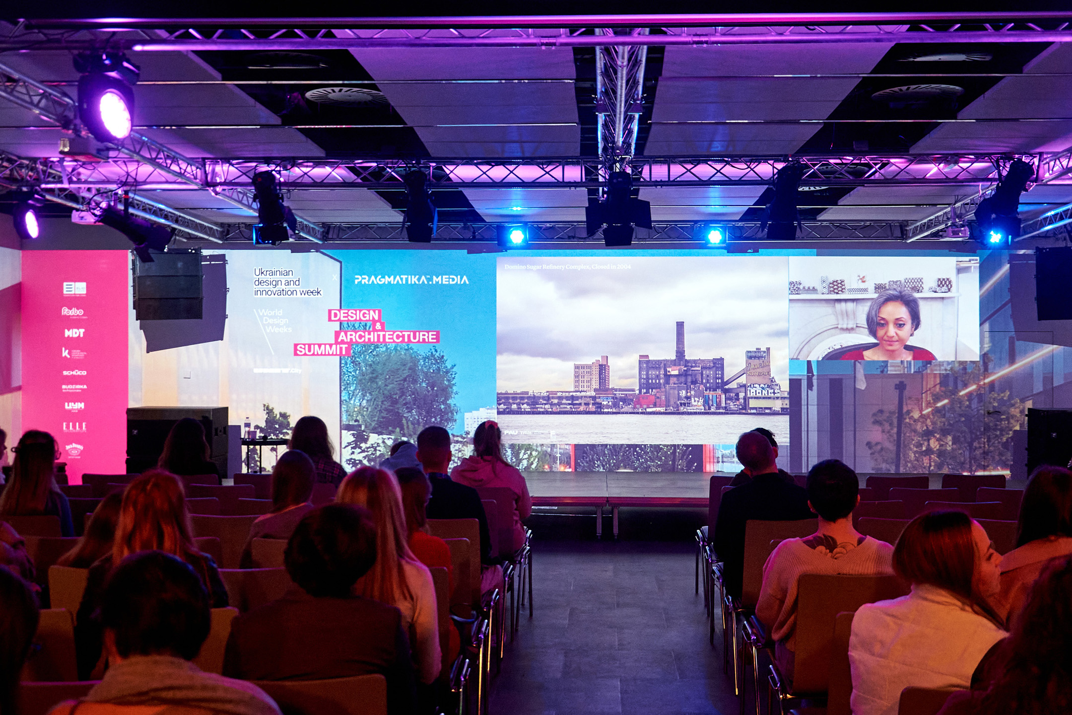 Директорка та головна архітекторка студії Practice for Architecture and Urbanism Ручіка Моді доєдналась до саміту відеозв’язком із Нью-Йорка. Американська архітекторка індійського походження розповіла про найвідоміший та найрезонансніший проєкт студії PAU — реновацію бруклінського заводу Domino Sugar Refinery, який команда завершила 2023 року. Кейс одразу ж привернув увагу світового архітектурного ком’юніті, про нього писали всі провідні архітектурні редакції. Його особливість у тому, що архітектори зберегли історичний фасад заводу, помістивши всередину сучасний офіс-центр зі скляним дахом. Водночас рівень втручання в історичну будівлю був мінімальним, PAU дбайливо зберегла всю автентику 120-річного заводу, побудованого в романському стилі.
