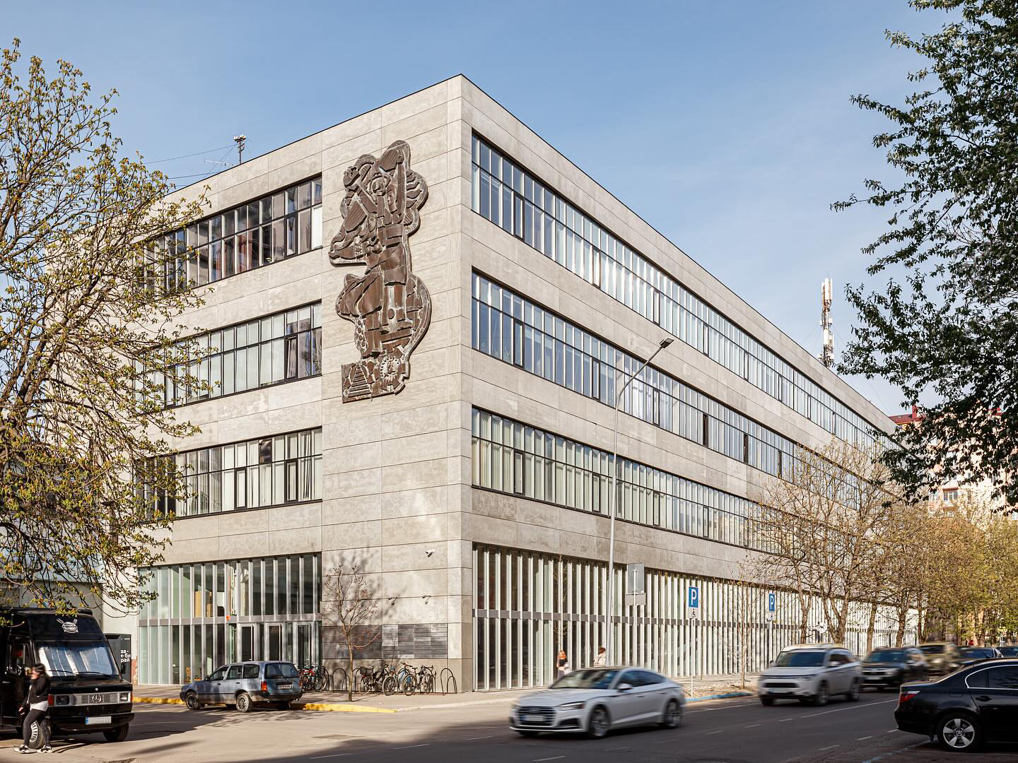 Promprylad.Renovation — проєкт реновації старого заводу «Промприлад» в Івано-Франківську. Автори реновації зберегли радянське монументальне мистецтво на фасаді. Джерело фото: Promprylad.Renovation