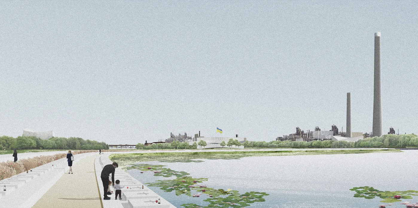 Меморіальне кладовище на березі моря біля басейнів технічної води заводу «Азовсталь». Візуалізація: урбаністична коаліція ro3kvit