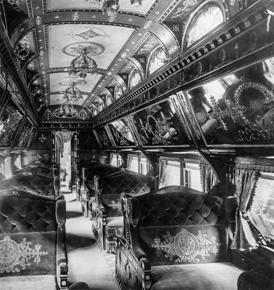 Так на рейках Америки, а пізніше і Європи з’явились загальні й приватні вагони з розкішними еклектичними інтер’єрами з елементами неокласики, вікторіанського стилю, а пізніше — ар-деко.