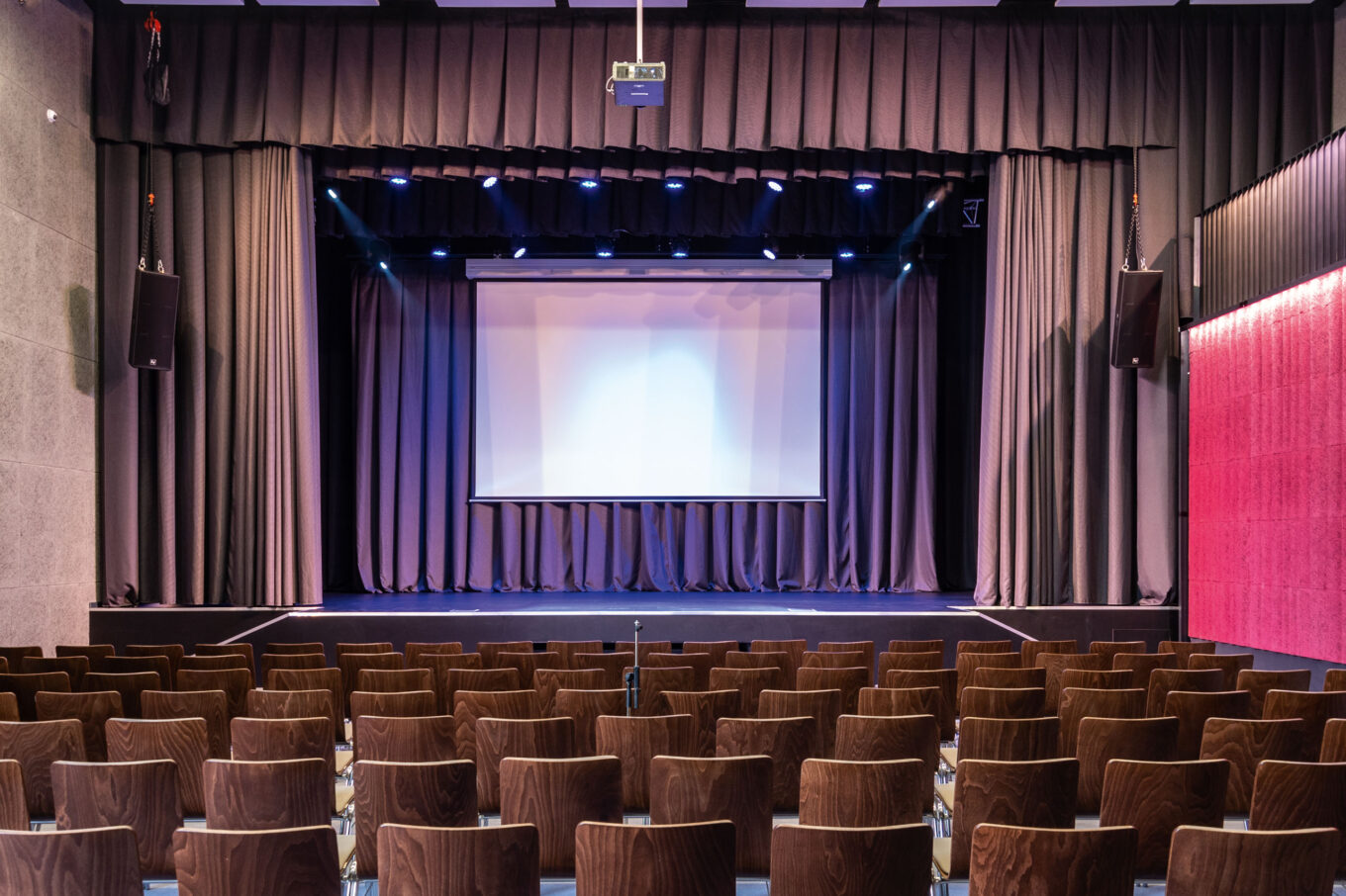 Актовый зал гимназии «А+» рассчитан на 200 мест. Он может использоваться для спектаклей школьного театра, концертов и научных конференций