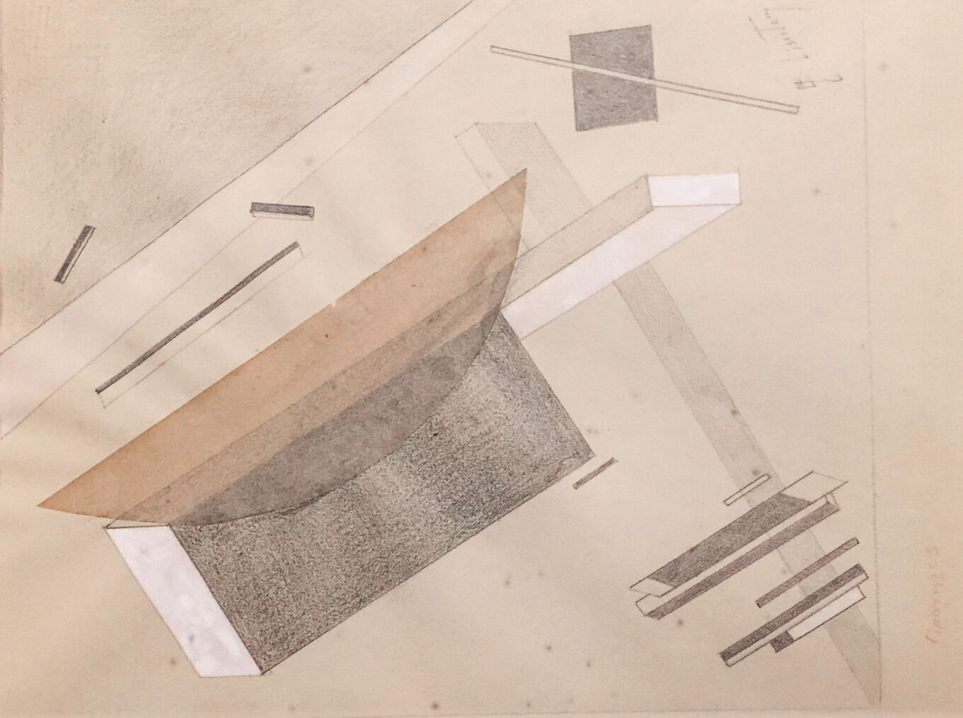 Так, вышагивали в будущее проуны Лазаря Лисицкого, серия абстрактных композиций на плоскости, где от простой и плоской геометрии он постепенно обращается к сложным объемно-пространственным строениям.