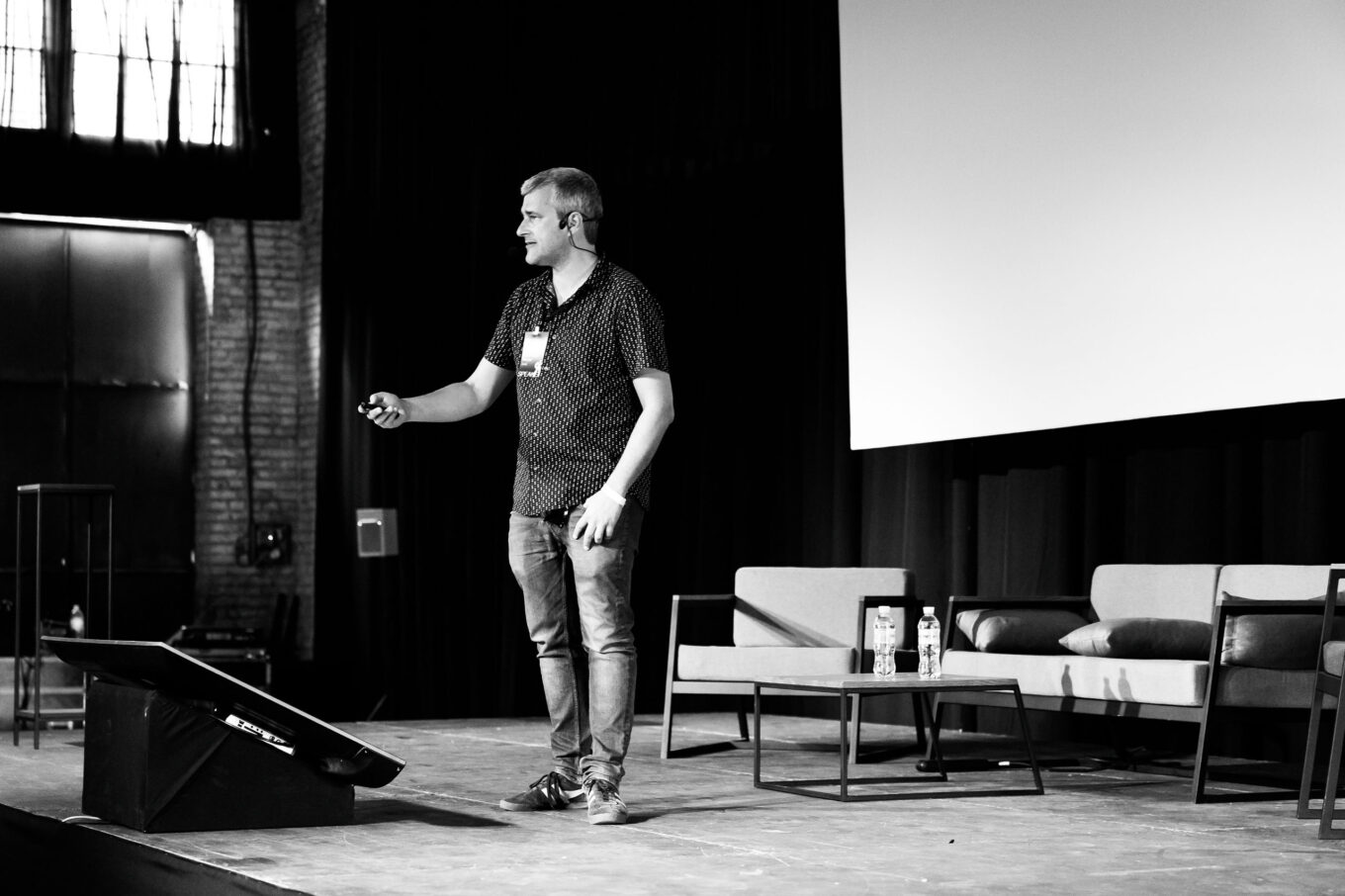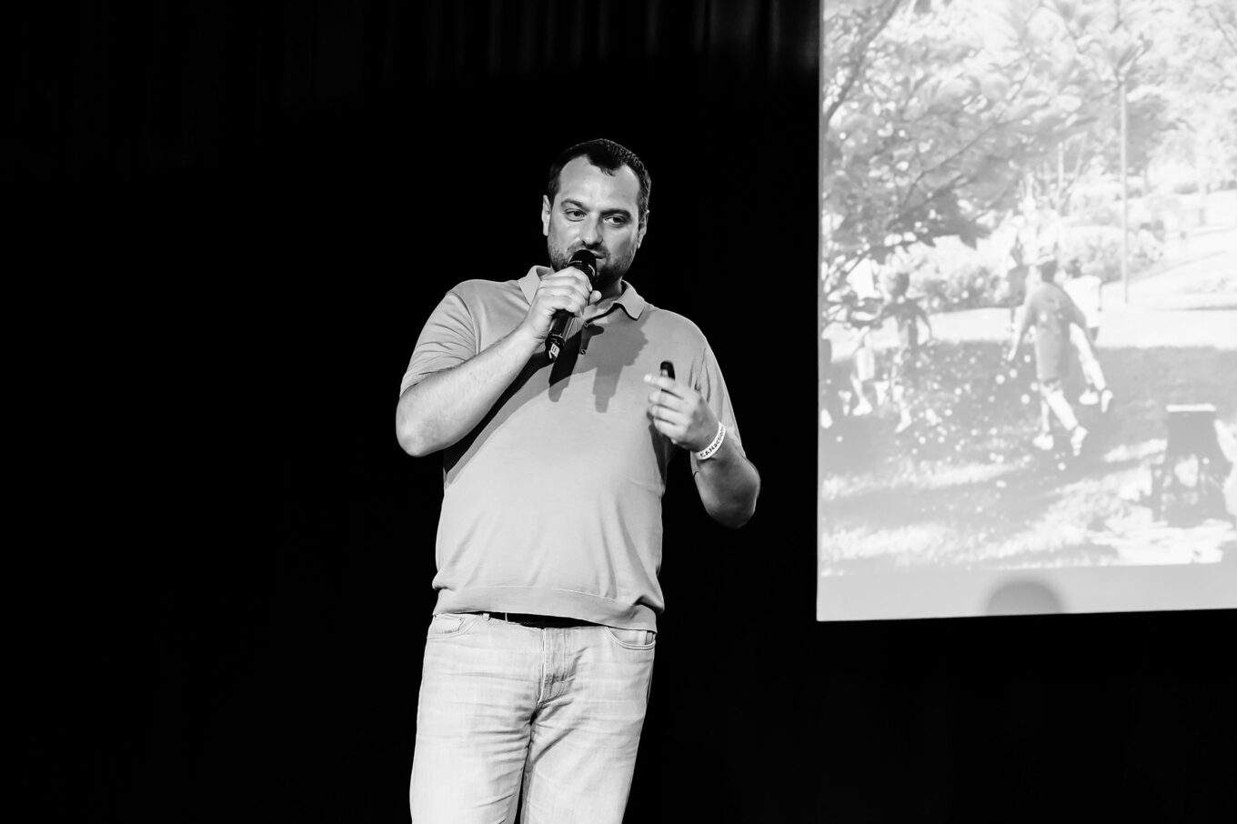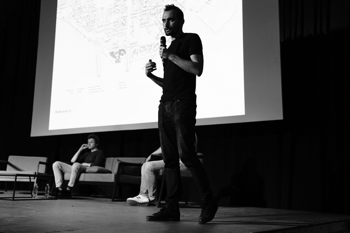 Максим Головко, сооснователь организации «Агенти змін», выступает на фестивале CANactions с презентацией проекта обновления набережной киевского Подола. Фото: Марго Дидиченко