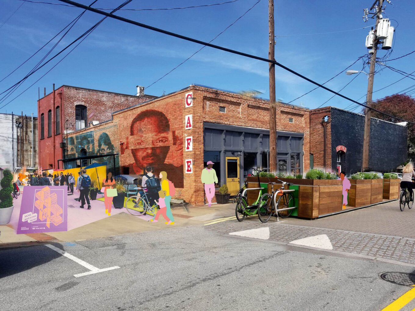 Плейсмейкинг-стратегия для общественных пространств города Ньюнан (США), разработанная командой Better Block, основывается на принципах PPS. Источник изображения: teambetterblock.com