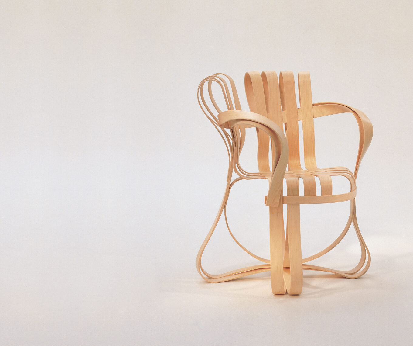 Фрэнк Гери, один из самых знаменитых архитекторов второй половины XX в., сделал карьеру, раздвигая границы и задаваясь вопросом, на что способна архитектура. Вдохновленный удивительной прочностью плетеных корзин, Гери создал для KNOLL совершенно оригинальную коллекцию мебели. «Вся мебель из гнутой древесины до сих пор опиралась на толстую и тяжелую основную конструкцию, а затем на промежуточную конструкцию для сидения. Отличие моих кресел заключается в том, что конструкция и сиденье состоят из одинаковых невероятно легких тонких деревянных полос, которые выполняют обе функции. Материал формирует единую и непрерывную идею. Что делает все это работающим и придает необычайную силу — так это переплетенный, похожий на корзину характер дизайна».