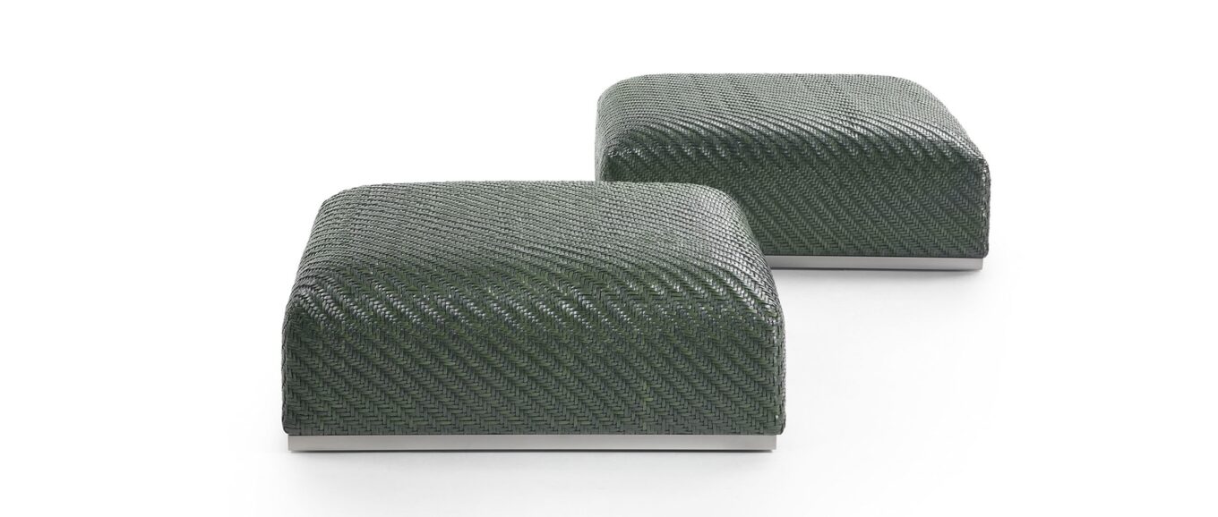 Большой квадратный пуф из коллекции MOOD — образец абсолютно классического плетения елочкой: самые ранние примеры такой техники можно увидеть в сложных ювелирных украшениях элиты Древнего Египта и образцах текстиля древней Италии. Выбор такого плетения далеко не случаен для Роберто Лаццерони: настоящий знаток истории дизайна, он умело применяет эти знания на практике. Плетеная воловья кожа придает поверхности трехмерную текстуру с рафинированным эстетическим эффектом.