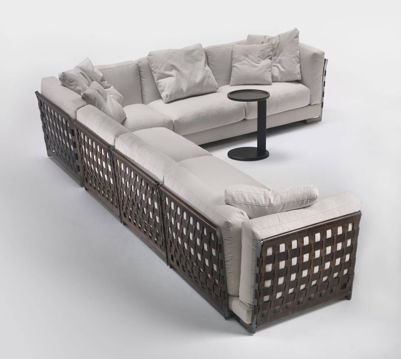 Уроженец города Меда провинции Монца-э-Брианца, колыбели мебельного производства Италии, маэстро 100 % Made in Italy Антонио Читтерио отвечает за коллекции Flexform последние 40 лет. Переосмысливающая привычные границы предметов интерьера модель дивана Cestone была разработана для размещения в центре пространства. Ее спинка и боковые части выходят из тени прямого функционала. В фокусе внимания — металлическая конструкция с плетением из прочной и упругой воловьей кожи. Доступны два варианта рисунка с полосами различной ширины: тесное плетение, образующее цельную поверхность, или более свободное, позволяющее обивке играть сквозь него цветовым акцентом.