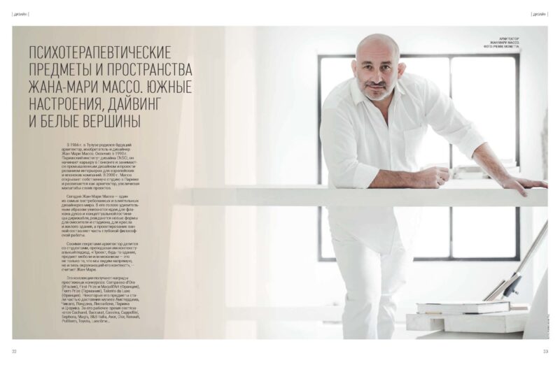 Сегодня Жан-Мари Массо — один из самых востребованных и влиятельных дизайнеров мира. В его голове удивительным образом уживаются идеи для флакона духов и концептуальной гостиницы-дирижабля, рождаются новые формы для смесителя и стадиона, для кресла и жилого здания, а проектирование ванной составляет часть глубокой философской работы.