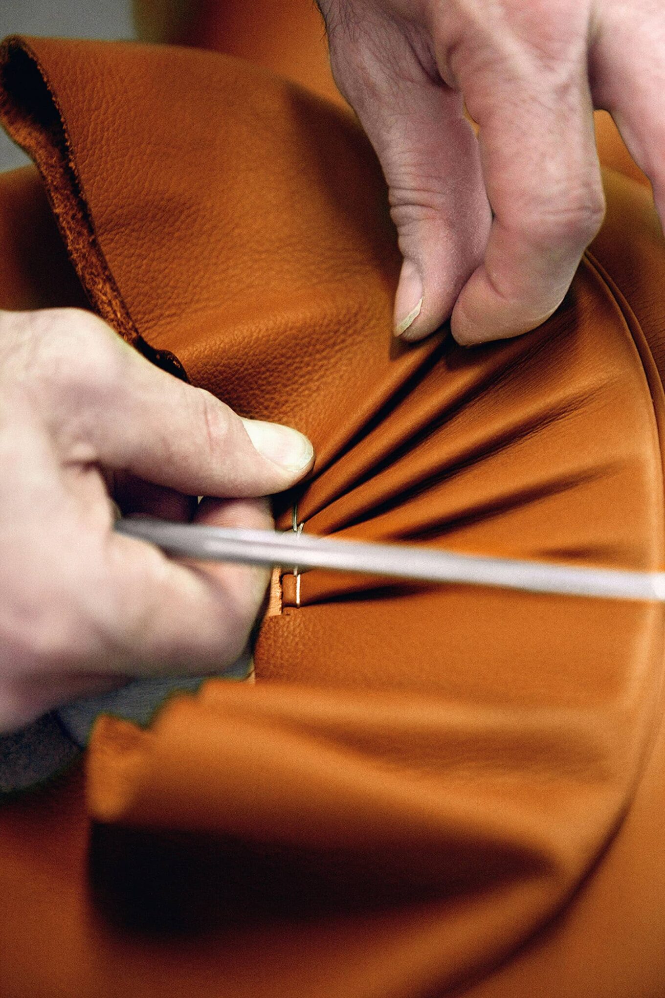 С момента основания фабрики Poltrona Frau объединяет машинное производство и ремесленный труд. Мастера вручную изготавливают каркасы, орудуют специальными изогнутыми иглами, простегивая кожаные обивки. Например, на каждую модель дивана Chester затрачивается 55 часов работы.