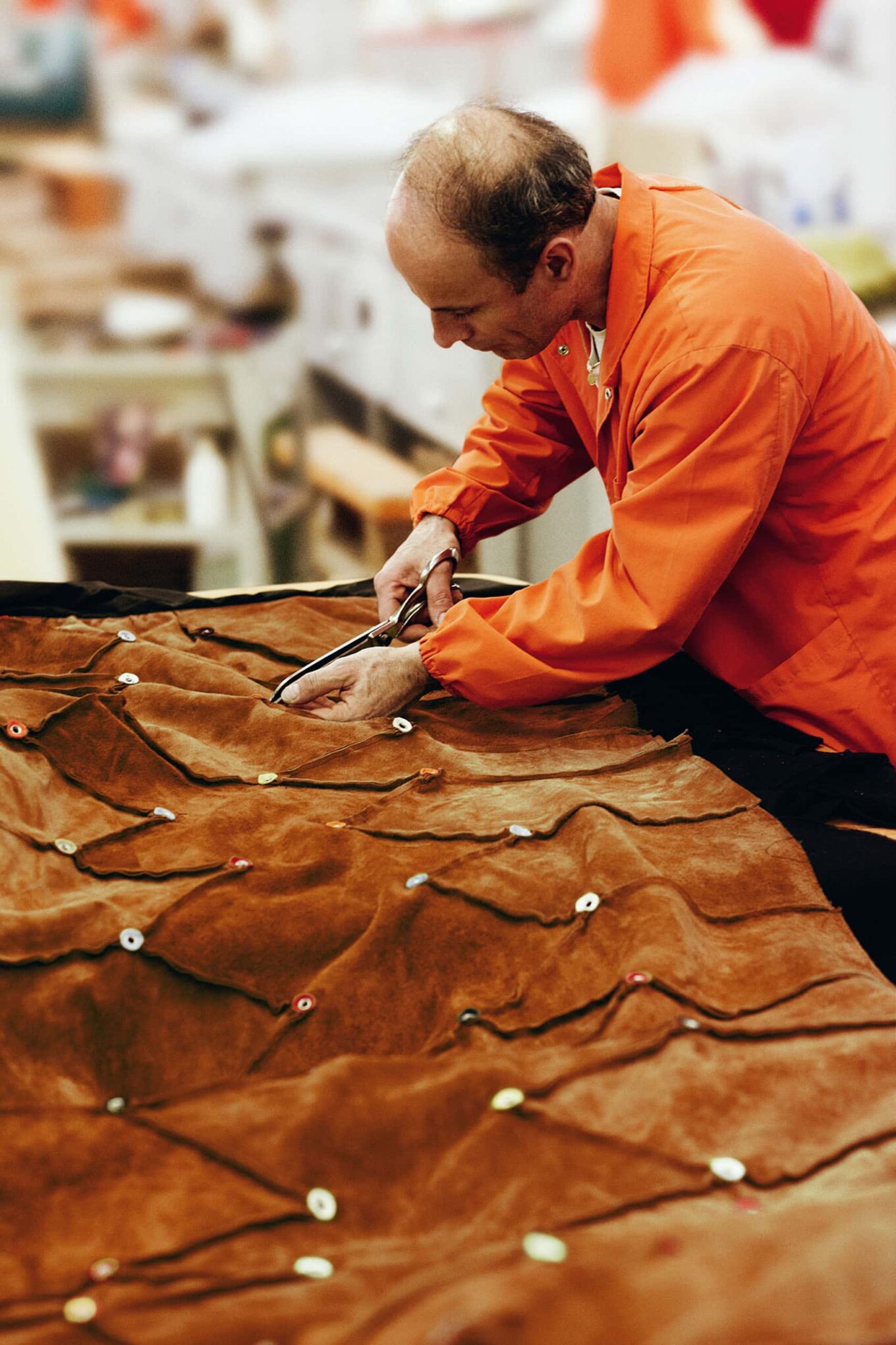 Сначала для производства отбирается лучшая шкура быков, для которой возьмут лишь верхний слой, содержащий оригинальный рисунок. Кожа коров, то есть женских особей, не используется, так она менее прочна и имеет растяжки, возникающие в результате беременности животного. Дальше материал проходит 22 этапа производственного процесса, прежде чем превращается в 340 тыс. кв. м обивки, ежегодно выпускаемой фабрикой.