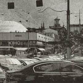 Недавно она представила столичной публике свою новую серию работ в технике линогравюры Reflection. Герой арт-проекта Олеси Джураевой – Киев без прикрас. Киев, каким его видит человек в своей будничной жизни – на ежедневном маршруте от дома на работу. PRAGMATIKA.MEDIA пообщалась с мастером графики о ее жизни, работе и трансформации города.