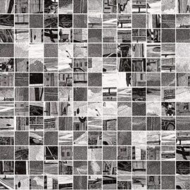 О. Д.: Больших станковых работ за год я могу сделать не так уж много — максимум три-четыре. Работа над одной формой занимает от двух до трех месяцев. Ты утомляешься, потому что проходит несколько месяцев — а результата все еще не можешь почувствовать. При этом, естественно, у меня остаются не очень хорошие оттиски, которые не удовлетворяют меня по качеству — по тону, по насыщенности краски. Насобиралось какое‑то количество условного брака. Как‑то было у меня настроение, я порезала и сложила их как пазл — сначала в маленьком формате. Мне стало интересно. Первые коллажи, которые я сделала, были более абстрактными. Это мозаика, сложенная из кусочков, в каждом из которых своя жизнь. Опознать какой‑то пейзаж там было невозможно. Прошло время — и опять накопилось какое‑то количество оттисков. Я решила, что можно попробовать сделать что‑то более узнаваемое. И действительно — за последние годы вокруг появилось много стеклянных поверхностей. Они, конечно, влияют на пейзаж, появляются какие‑то отражения, преломления. Я попробовала передать эту идею, ритмы, повторы — получилась новая серия.