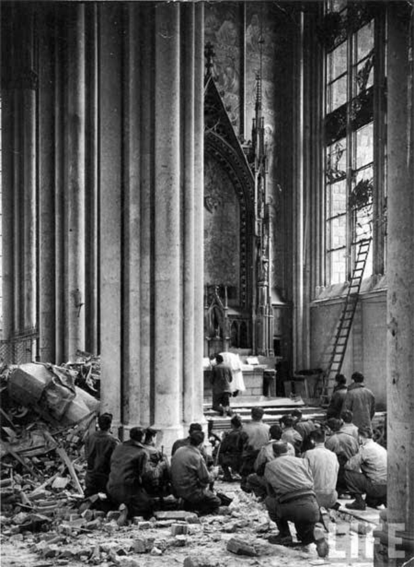 Меса в пошкодженому під час бомбардування Кельнському соборі, 1945. Джерело фото: Life Photo Collection