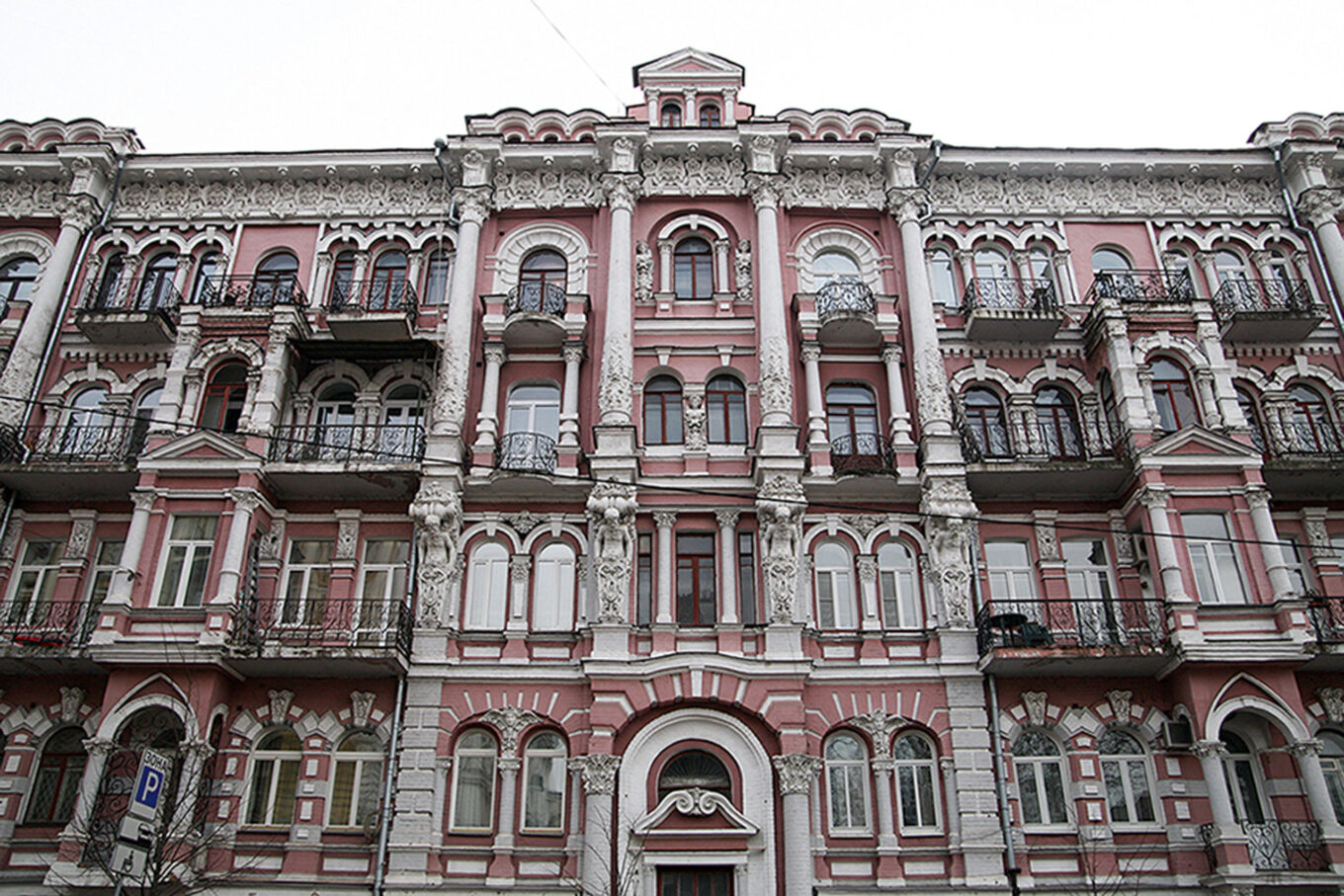 Доходный дом в стиле модерн, построенный в 1904 г., был спроектирован архитектором Александром Вербицким. В начале ХХ в. здание было одним из самых высоких в центре Киева. Примечательный элемент фасада — большие женские маскароны в простенках окон пятого этажа. Кроме того, интерес представляют кованые ограждения балконов. В 1906—1907 гг. на первом этаже дома в пятикомнатной квартире проживала Анна Ахматова, а также бывал Николай Гумилев, который в тот период ухаживал за поэтессой.