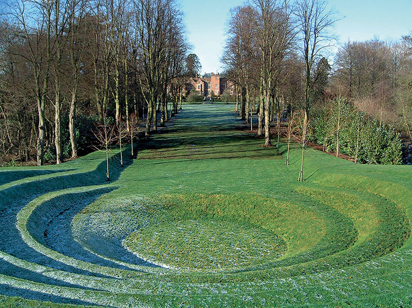 Боутонский парк – одна из относительно недавних работ Кима Уилки. Он был построен в начале XVIII в. для герцога Баклю. Последний владелец титула привлек архитектора для работ по обновлению старинного парка. Масштаб отведенного пространства позволил создать несколько «перевернутых пирамид» с террасами, которые спускаются на 7 метров ниже уровня земли