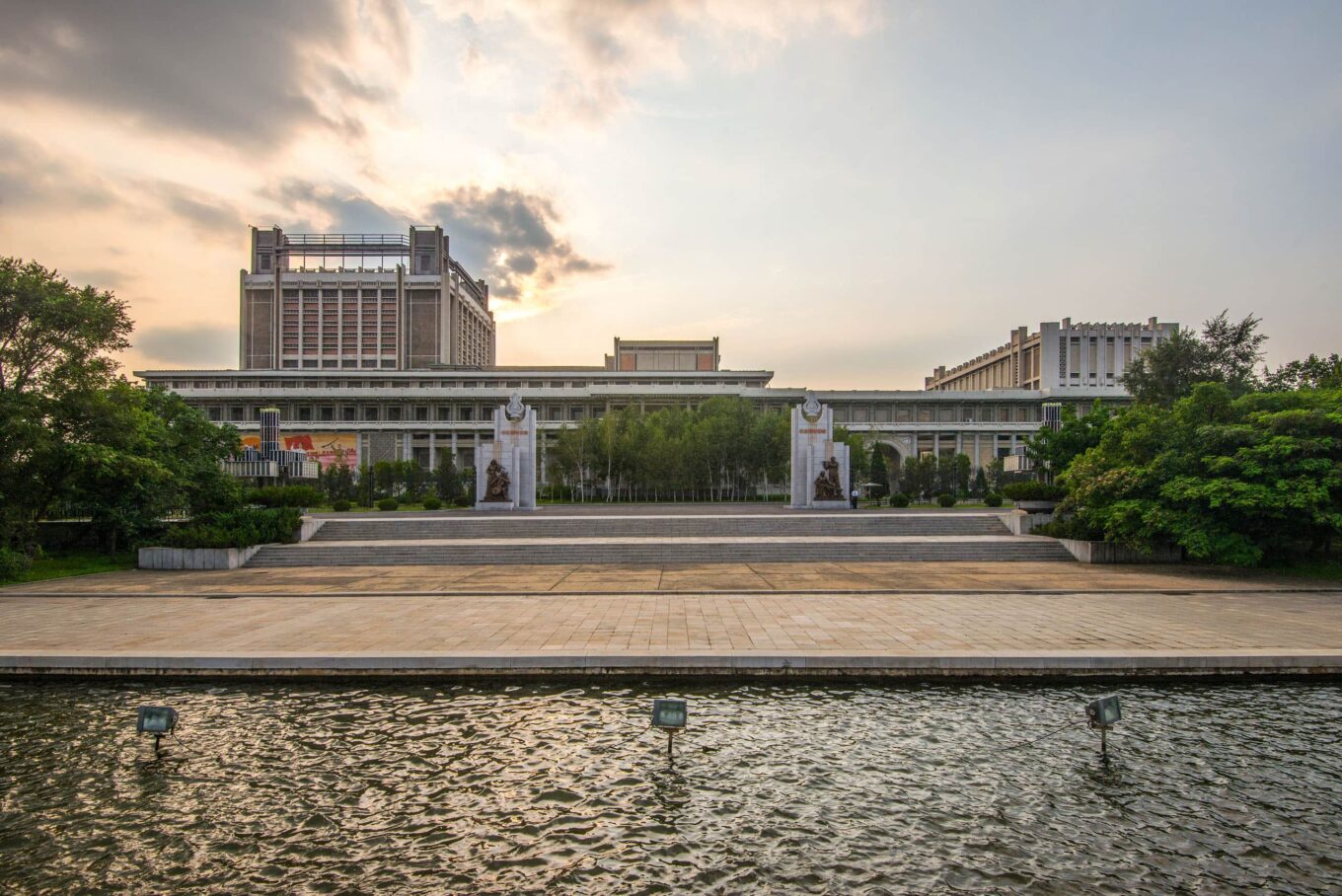 Народный дворец учебы, построенный в 1982 г., стал завершением ансамбля площади Ким Ир Сена, застроенной еще в 1950‑х