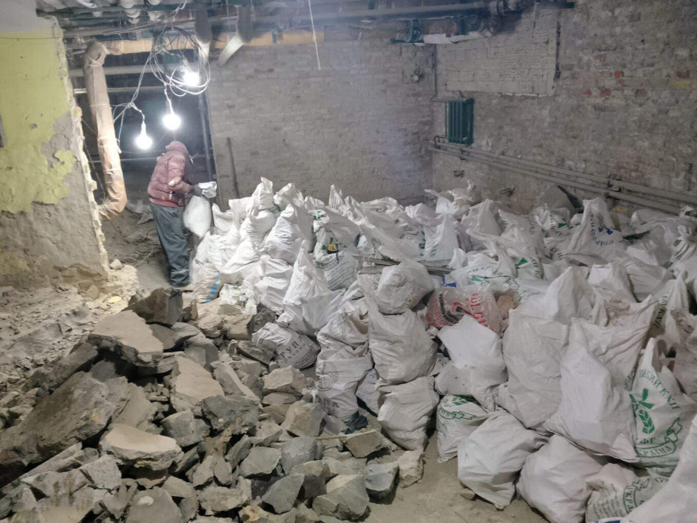 «Як усе це трималося? Відверто кажучи — на чесному слові, — ледве стримуючи емоції, розповідає Григорій Лисенко. — Ми наразі розібрали лише одне перекриття з неармованого бетону. Якщо цікаво, можна зайти й подивитися: на першому, третьому, четвертому поверхах ці конструкції ще зберігаються. Ані я, ані мої конструктори не можемо пояснити, як вони взагалі працювали. Товщина бетону — від 40 до 60 сантиметрів. Його просто залили на металеві балки-двотаври з кроком приблизно півтора метра. Жодного армування, суміш битої цегли із цементним розчином — і все.