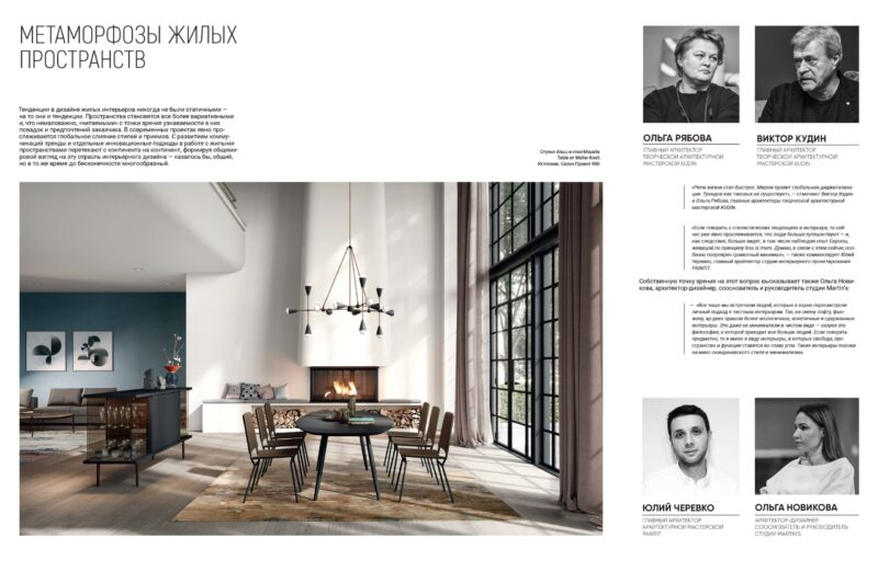 «Ритм жизни стал быстрее. Миром правит глобальная диджитализация. Трендов как таковых не существует», — отмечают Виктор Кудин и Ольга Рябова, главные архитекторы творческой архитектурной мастерской KUDIN.