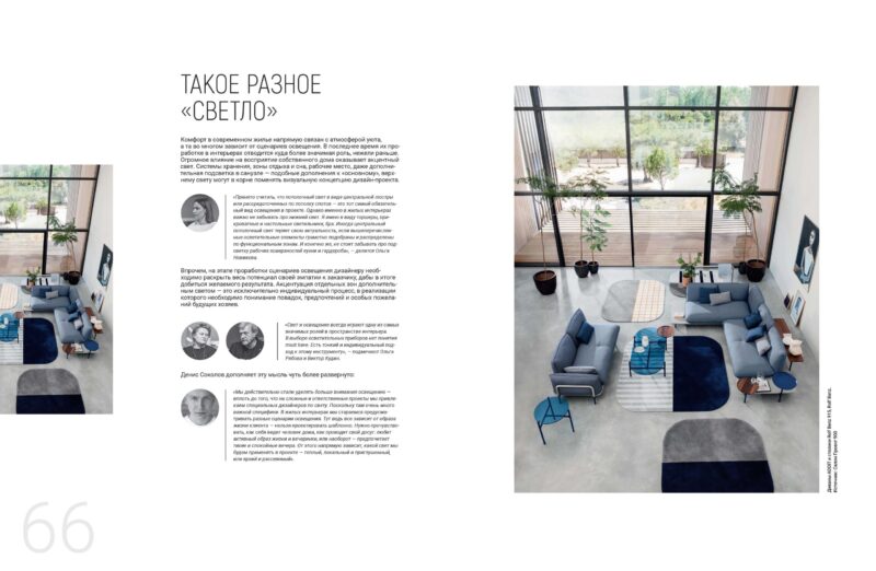 «Мы действительно стали уделять больше внимания освещению — вплоть до того, что на сложные и ответственные проекты мы привлекаем специальных дизайнеров по свету. Поскольку там очень много важной специфики. В жилых интерьерах мы стараемся предусматривать разные сценарии освещения. Тут ведь все зависит от образа жизни клиента — нельзя проектировать шаблонно. Нужно прочувствовать, как себя ведет человек дома, как проводит свой досуг: любит активный образ жизни и вечеринки, или наоборот — предпочитает тихие и спокойные вечера. От этого напрямую зависит, какой свет мы будем применять в проекте — теплый, локальный и приглушенный, или яркий и рассеянный».