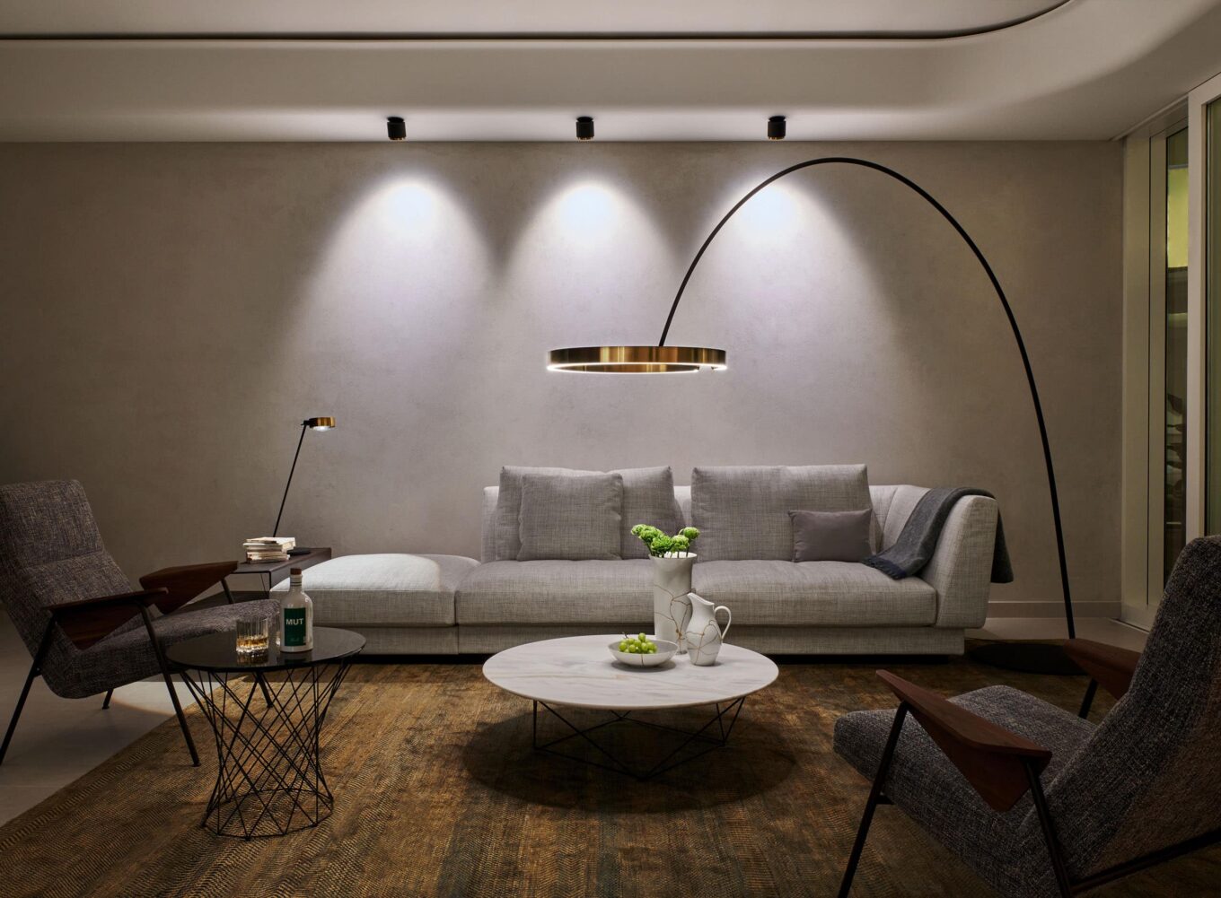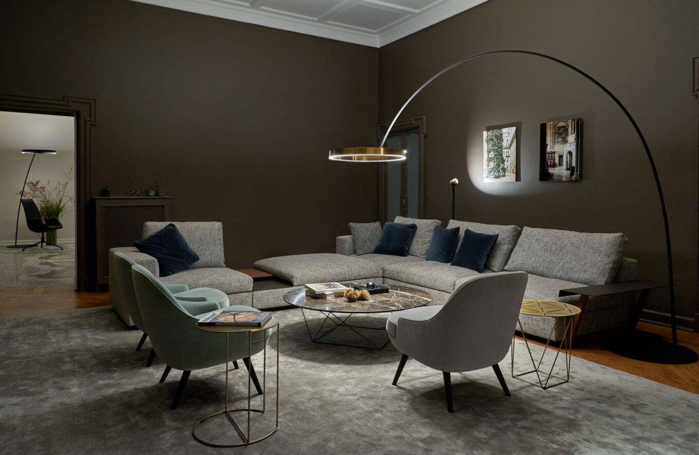 Торшер Mito Largo, Occhio; кресла Votteler Chair, диван Grand Suite, столики Joco Stone и Oota от Walter Knoll. Источник: Салон Проект 900