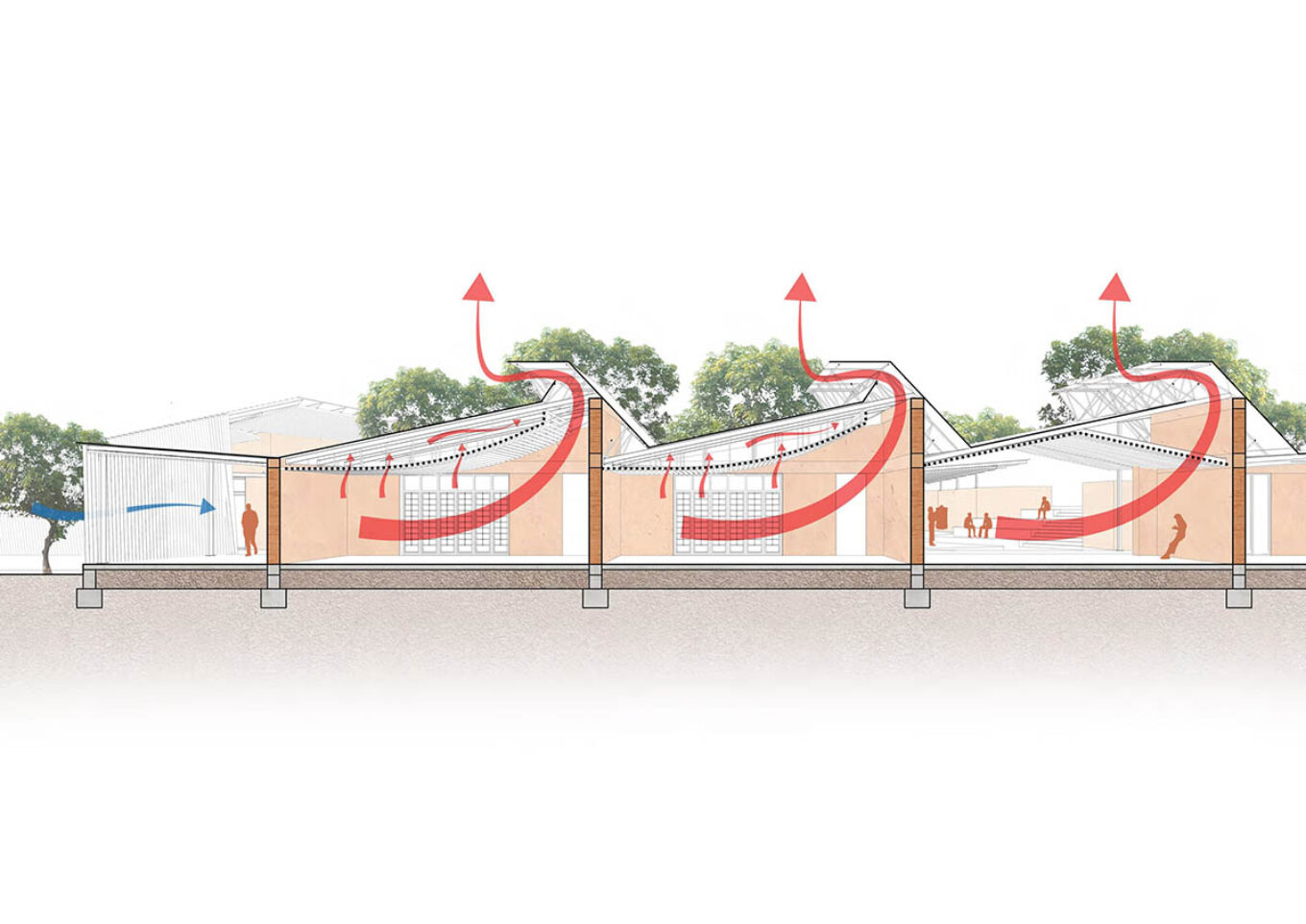 Замість вікон Кере використовує шаттерси. Завдяки ним вентиляція повітря відбувається знизу вгору, а надлишок тепла і вологи виходить крізь систему подвійного даху за принципом димаря. Крім того, використання шаттерсів як елементів крівлі та вікон дозволяє уникнути прямих сонячних променів та покращити якість освітлення у навчальних аудиторіях.