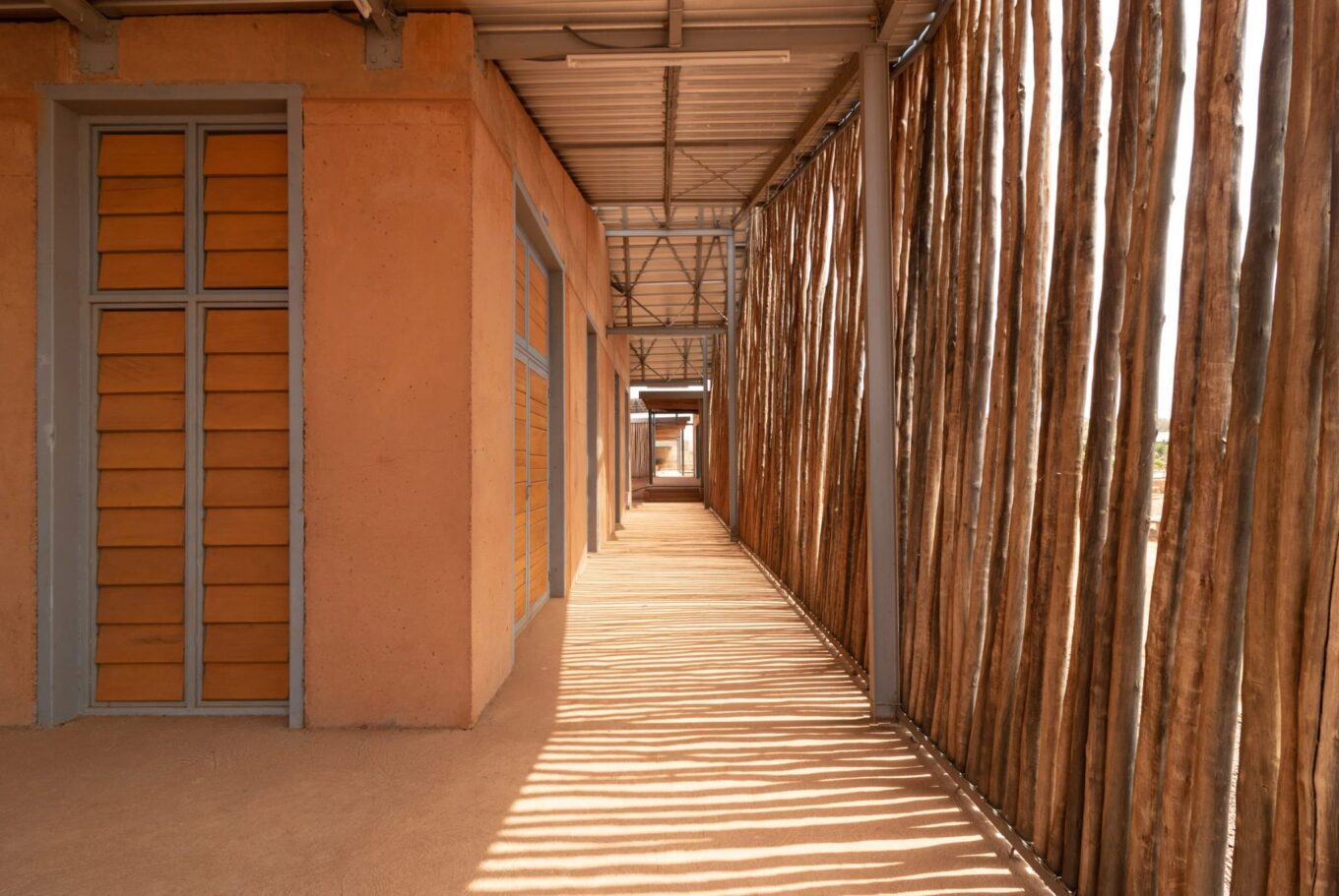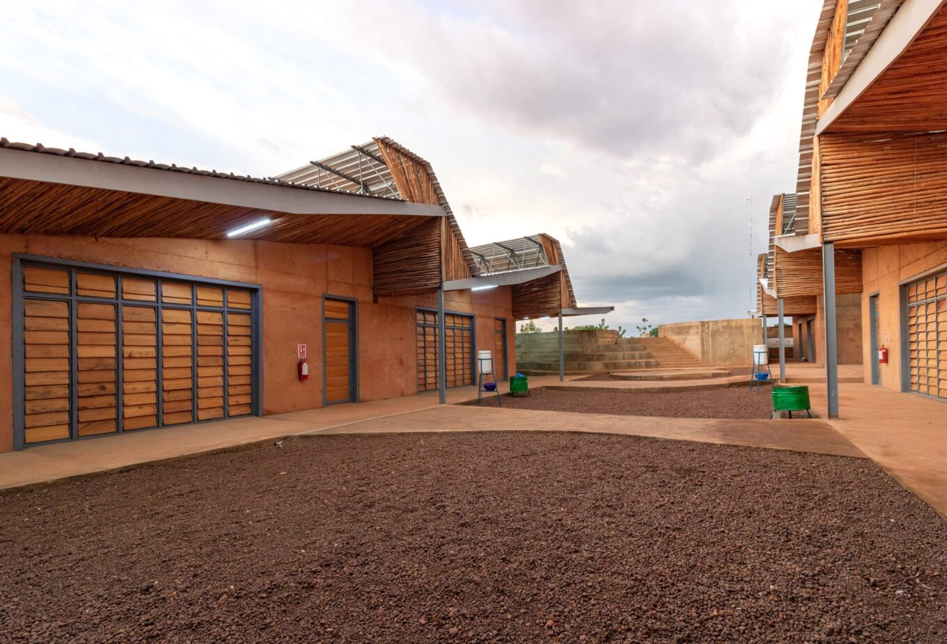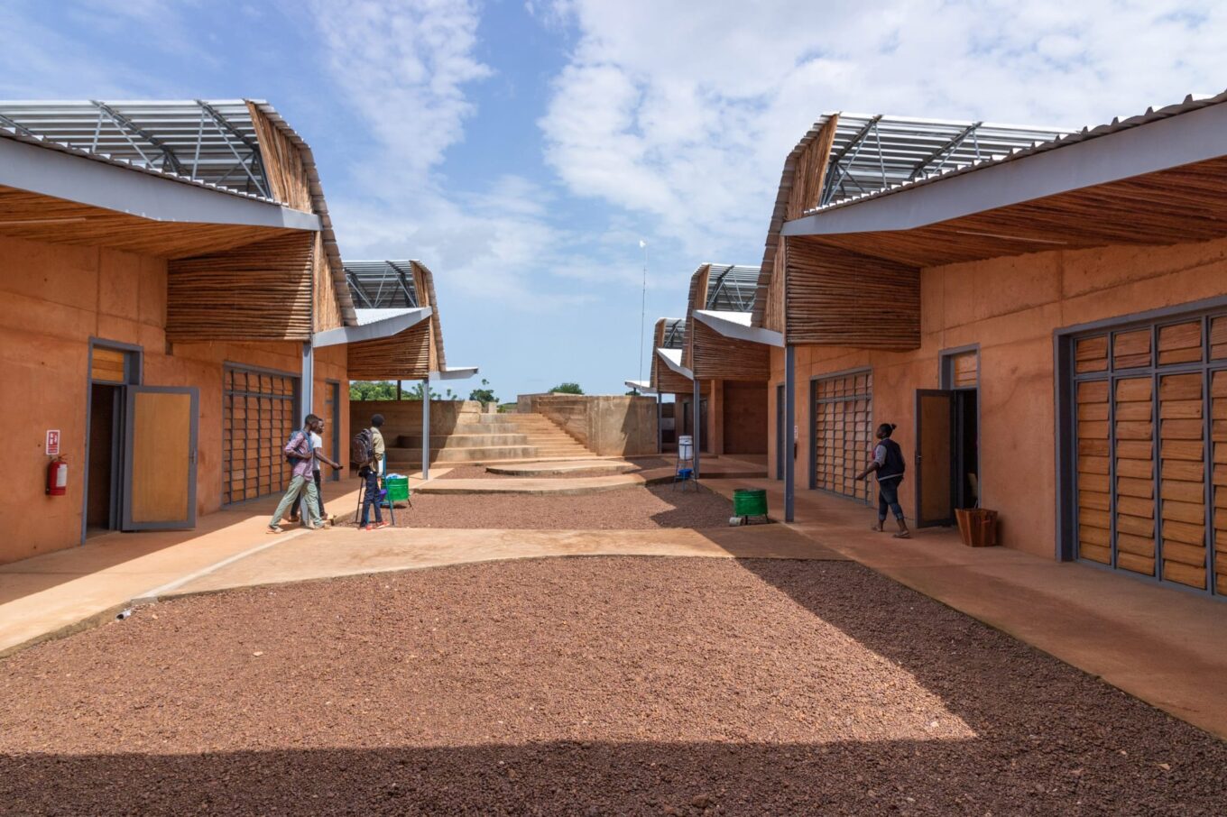 Із місцевої глини виготовили увесь кампус. Її поєднали з бетоном, а потім залили на місці в великих опалубках. Опалубка конструкції була спроєктована так, що її можна було розібрати і перебудувати для створення наступного модуля. Такий підхід дозволив скоротити терміни реалізації.