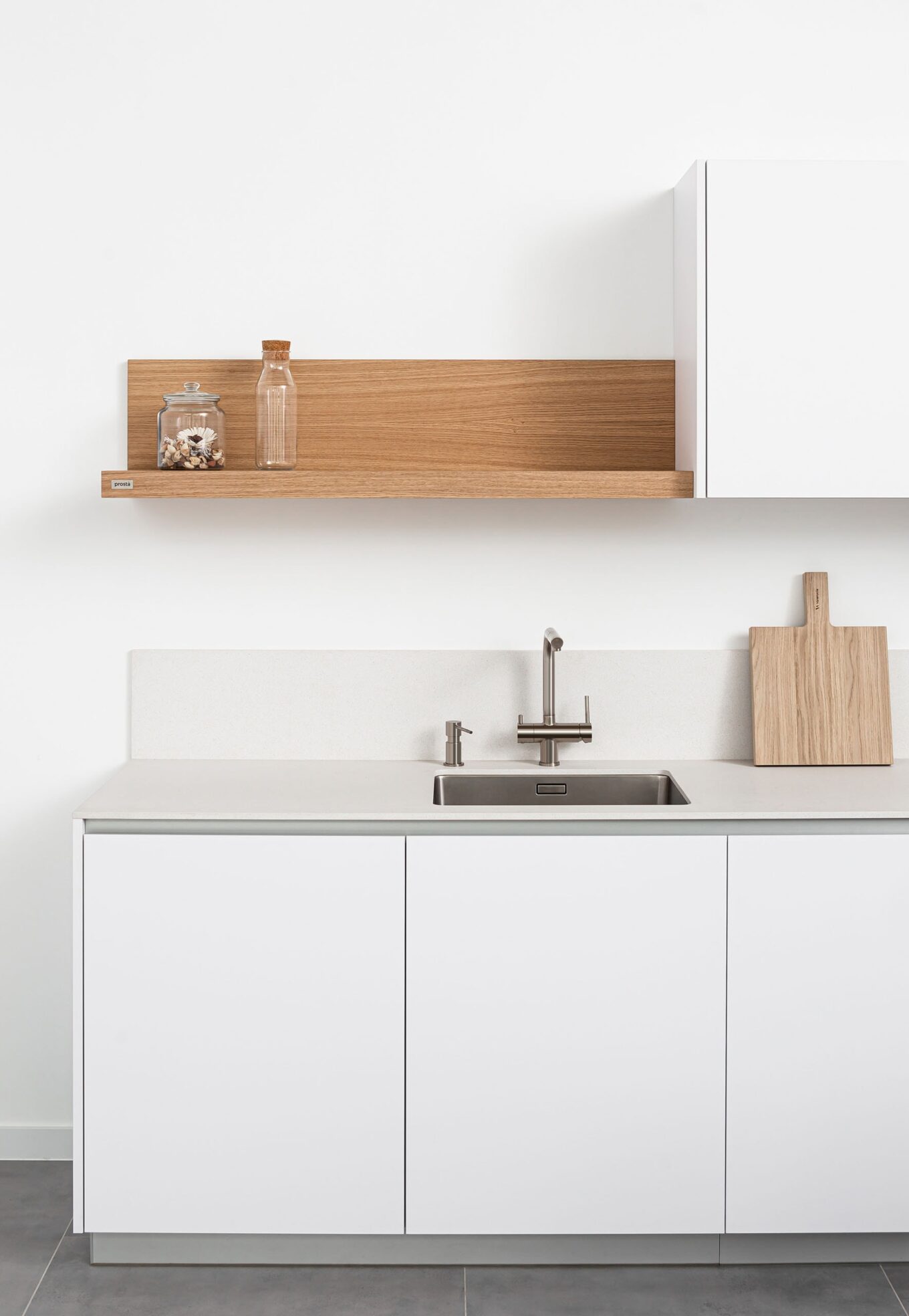 Два кольори, модульність, стандартні розміри блоків — всі ці закладені ще на етапі проєктування складові стали запорукою того, що виготовляється Prostá всього за три (!) дні. Ще до отримання замовлення 90 % кухні вже готово і базується на складі як окремі деталі, а коли воно надходить — залишається лише зібрати її та запакувати. До речі, збирається кухня безпосередньо на виробництві, без різного роду стяжок, у ваймі. До клієнта ж доставляють готові модулі, що значно спрощує і прискорює процес монтажу — він займає всього день.