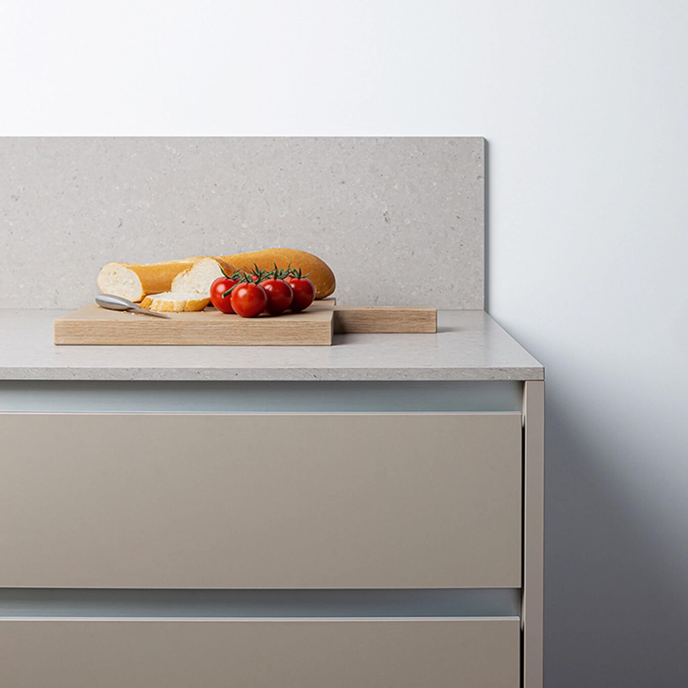Фасади для Prostá виробляються з цієї ж бельгійської плити, яка окремо фарбується на заводі у Німеччині. Там її вкривають спеціальною фарбою з ефектом soft touch (приємне на дотик легке матове покриття) та піддають обробці на ультрафіолетових лініях, завдяки чому фарба у процесі використання кухні не вигорає на сонці, оскільки вже зазнала впливу ультрафіолету на виробництві. Стільниця, якою комплектується Prostá, виготовляється з кварциту — штучного каменю товщиною 12 мм. Але передбачена можливість зробити її з будь-якого матеріалу за бажанням клієнта — HPL-панелей, інших видів каменю, дерева або навіть фанери.