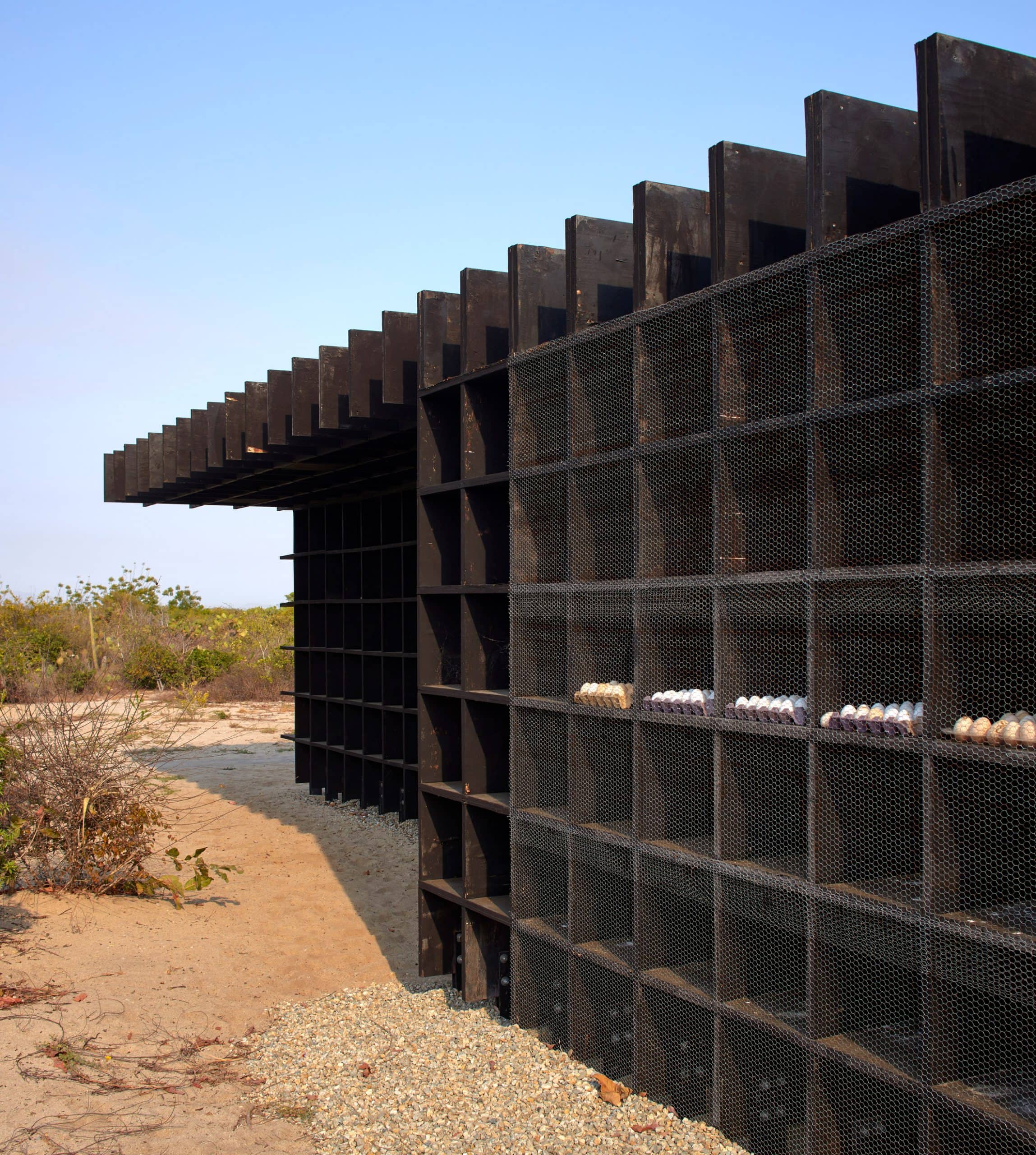 На вході до курника створений простір-ізолятор, де ветеринар може оглядати птахів і за необхідності лишати їх у комірках, що зачиняються. Тут же співробітники складають зібрані яйця, перш ніж відправити їх на кухню Casa Wabi.