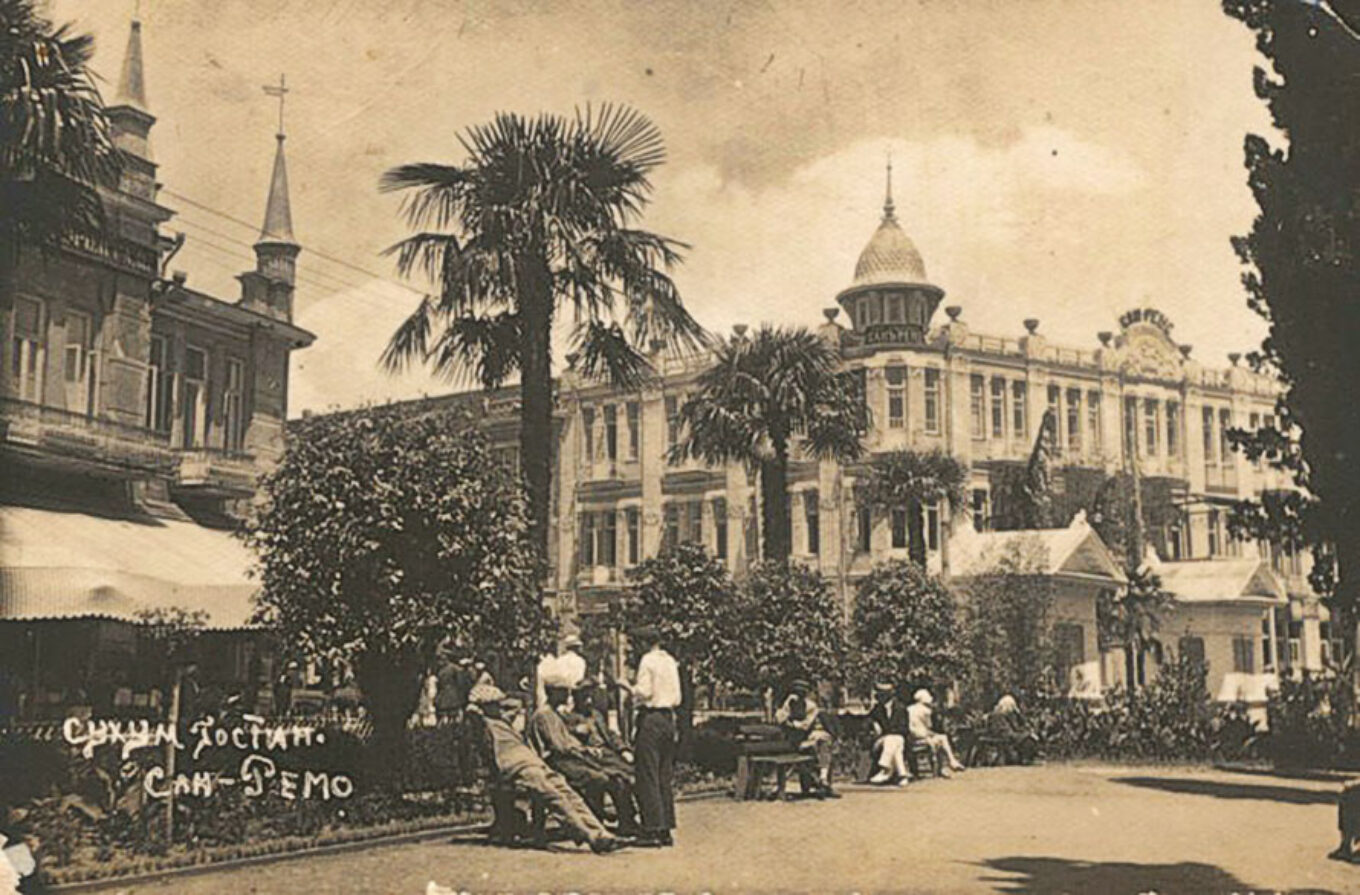 Більшість забудови — справа рук колоністів: греків, німців, турків, росіян. А ось корінних мешканців від участі у відродженні Сухума примусово усунули. Після останньої російсько-турецької війни абхазів призначили «винним населенням». Як писав історик Анзор Агумаа, абхазам «за наказом російського військового командування заборонялося селитися ближче 1 версти від берега моря та 5 верст від Сухума».