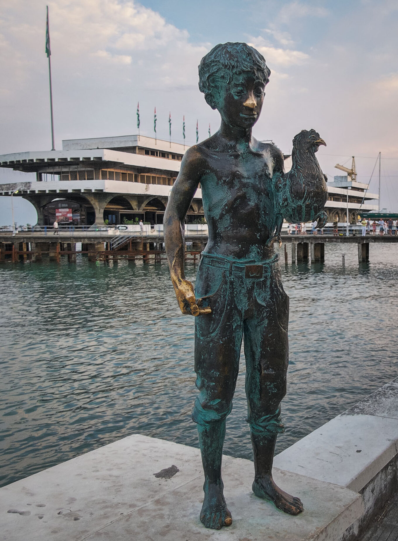«Чік із куркою», скульптор Архип Лабахуа. Бронзова скульптура героя оповідань Фазіля Іскандера була встановлена на Набережній Махаджирів у 2011 році