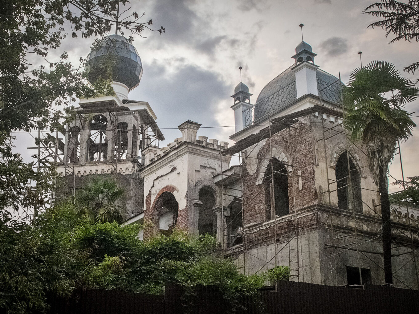 Привіт із Гагри. Палац принца Ольденбурзького, який ввів серед російської аристократії моду на відпочинок в Абхазії. Будівлю передано в приватну власність. Наразі тут ведуться ремонтні роботи. Важко судити, чи має намір власник дотримуватись оригінального архітектурного проєкту.