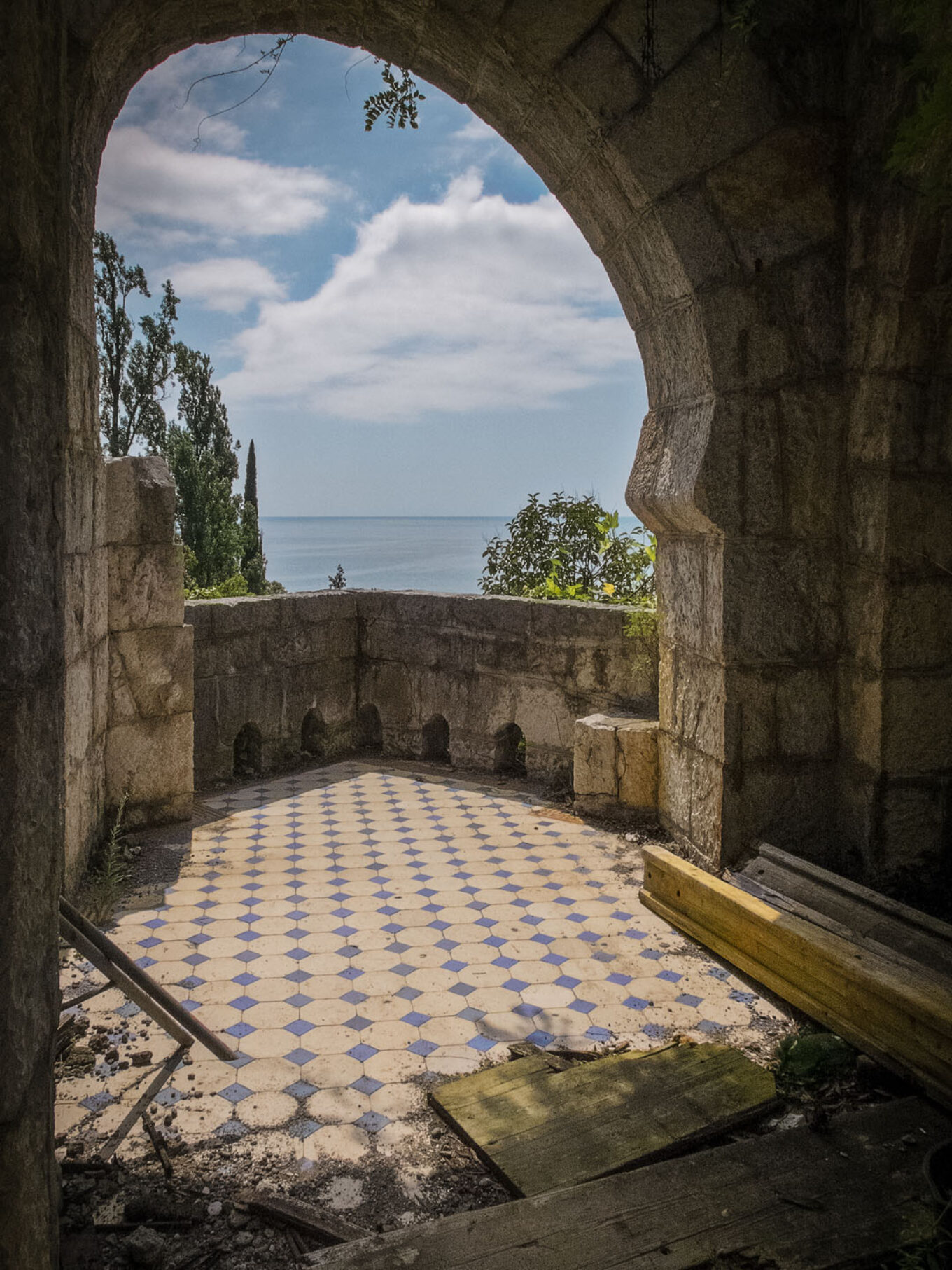 Санаторії Гульріпш, два розкішні палаци, збудовані на замовлення мецената Миколи Смецького для легеневих хворих, благополучно пережили військову фазу грузино-абхазького конфлікту, але були зруйновані вже в мирний час. Марсельська черепиця з дахів палаців мігрувала на дахи сараїв і котеджів. У тому ж напрямі, певно, вирушили вікна, двері, водостоки. Та й самі стіни тануть, як цукровий льодяник, — їх розбирають на будматеріали.