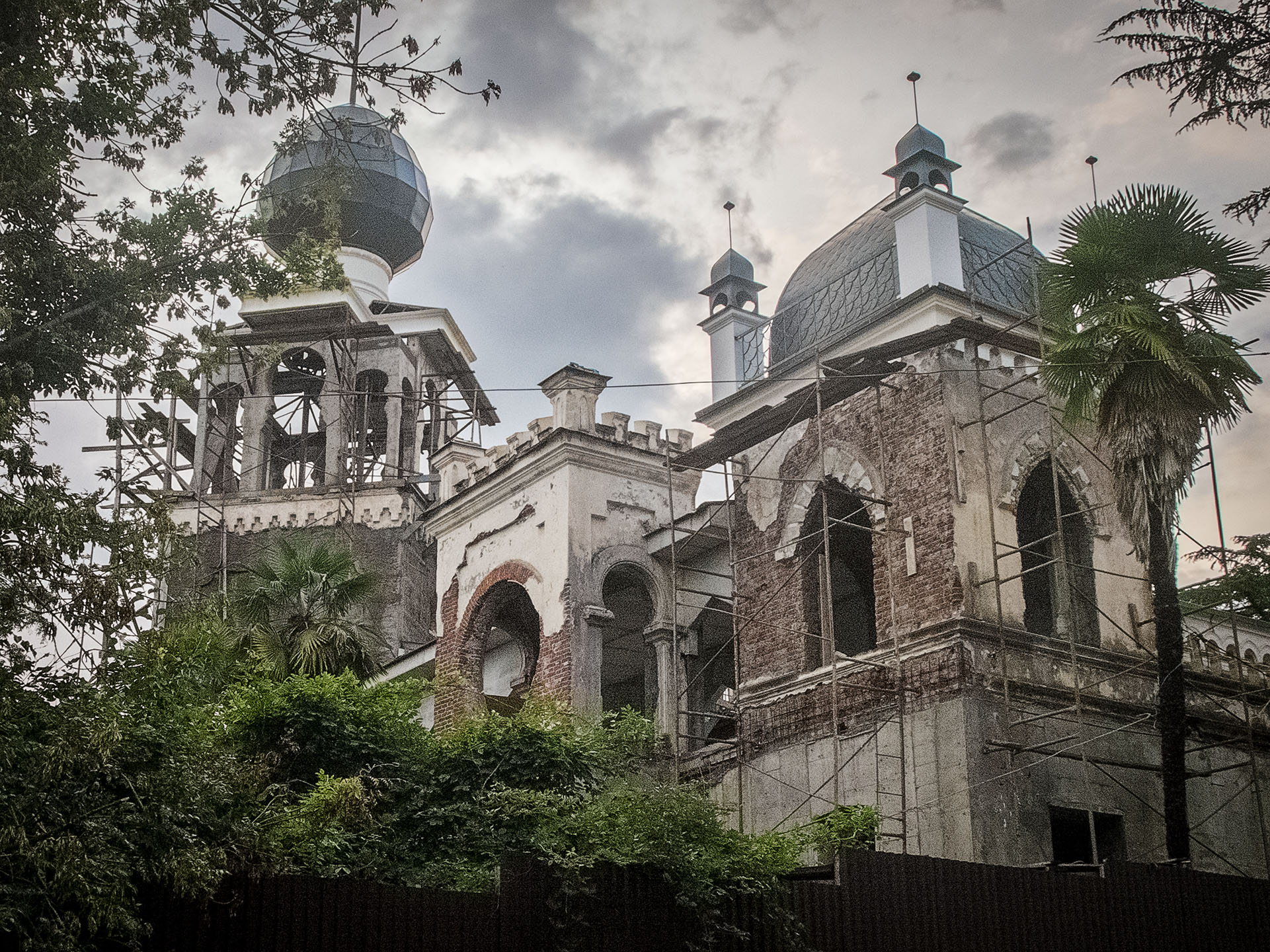 Привіт із Гагри. Палац принца Ольденбурзького, який ввів серед російської аристократії моду на відпочинок в Абхазії. Будівлю передано в приватну власність. Наразі тут ведуться ремонтні роботи. Важко судити, чи має намір власник дотримуватись оригінального архітектурного проєкту.