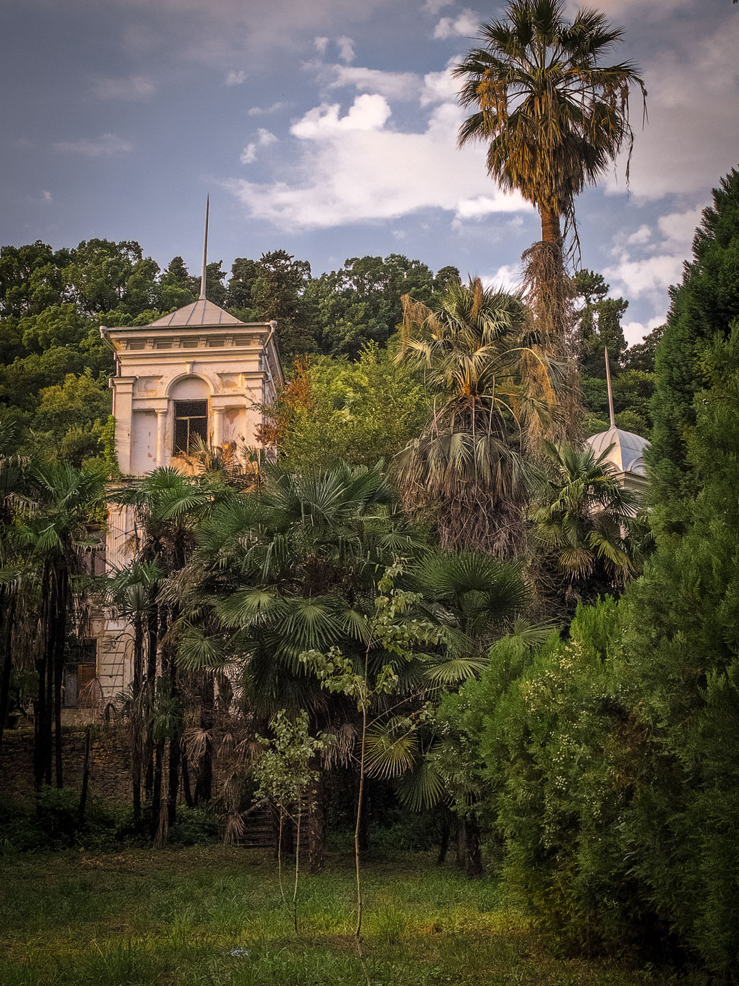 Сухумським палацам властива особливість: старіючи, вони перетворюються на руїни, а не на розвалини. Секрет благородного старіння чи то в буйній рослинності, яка захоплює уламки стін у декоративну зелену оправу, чи то в первісній досконалості ліній. Естетика руйнування в чистому вигляді. Проте сумно. Масштабні збитки архітектурі Сухума завдали не так артилерійські обстріли, як повоєнна розруха.