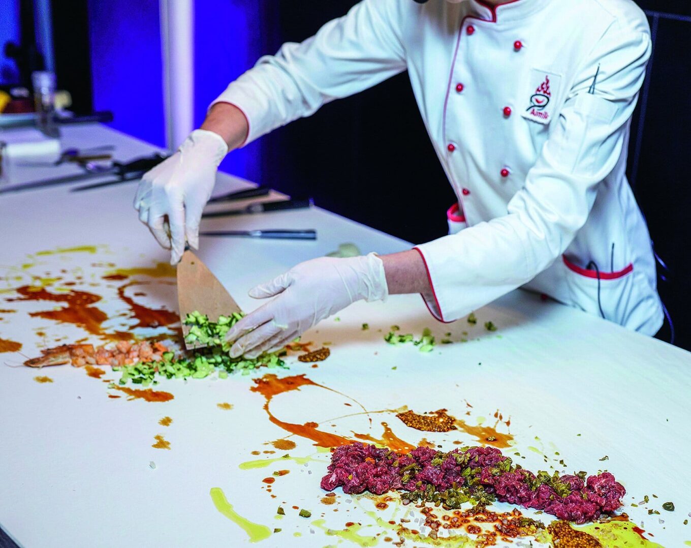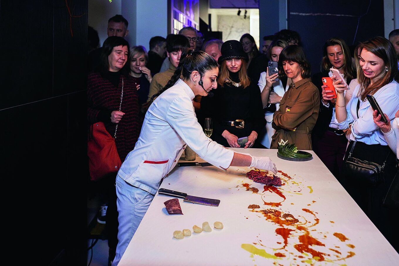 Во время праздничного вечера кухонные столешницы Laminam прошли проверку на прочность, испытав на себе остроту ножей Асмик Гаспарян, победительницы шоу «МастерШеф» — на глазах у зрителей она готовила три вида тартаров.