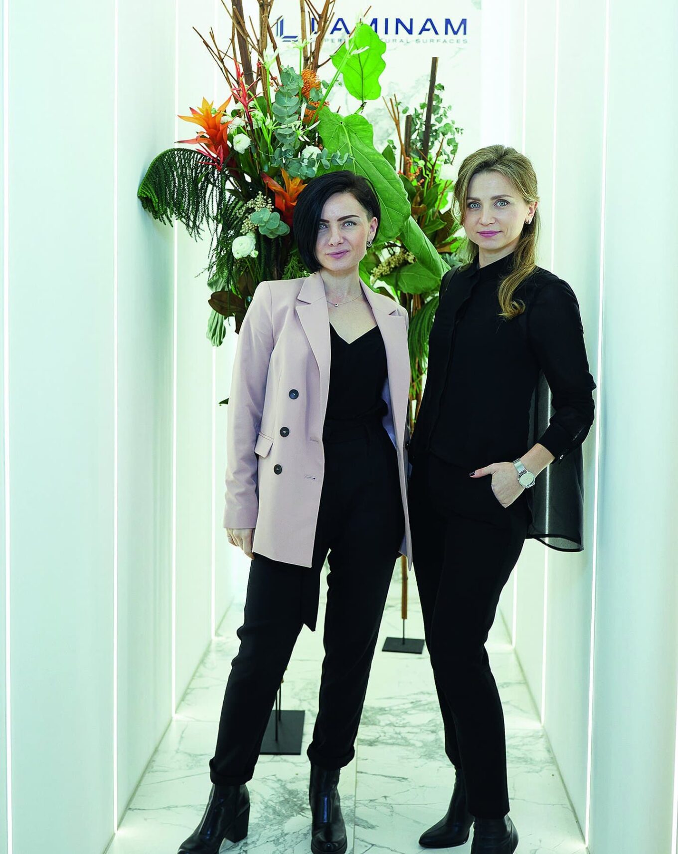 Виктория Высоцкая, руководитель салона Laminam UA в Киеве, и Марина Шевчук, проджект-менеджер в Laminam UA