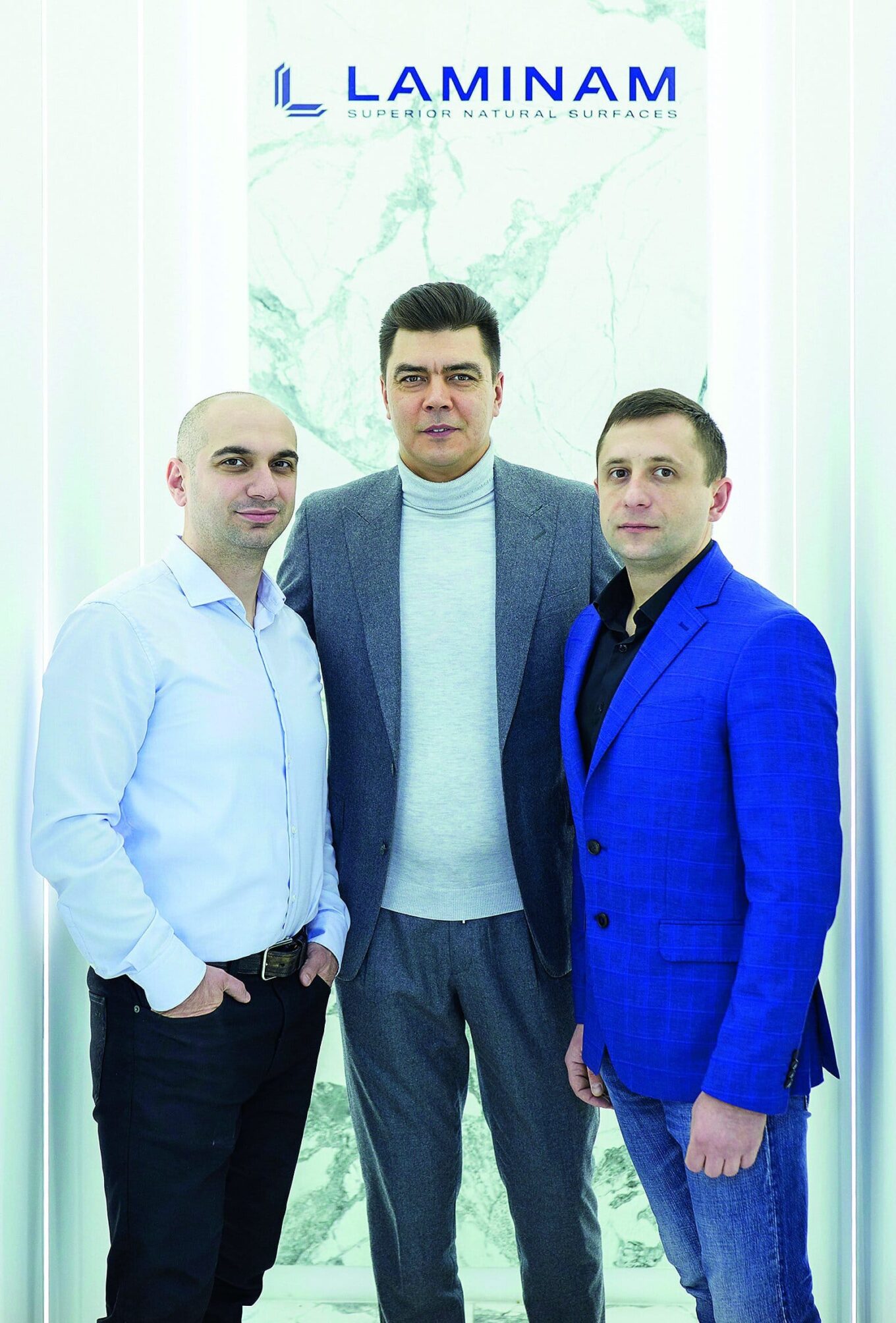 Тигран Авагумян, PM в Laminam UA; Олег Ян; Константин Дробязко, руководитель направления в Laminam UA по работе с мебельными компаниями