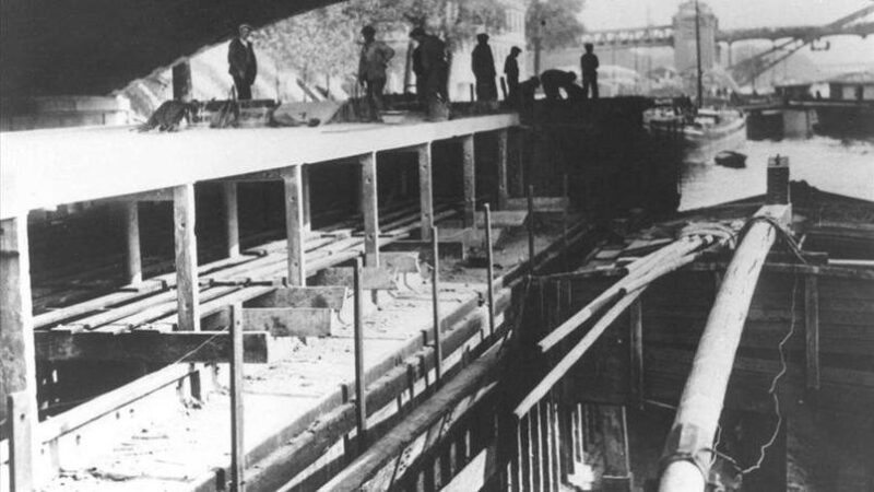 80-ти метрову баржу вагою близько 800 тонн збудували на руанській верфі в 1915 році для транспортування вугілля Сеною з Руана до Парижа.