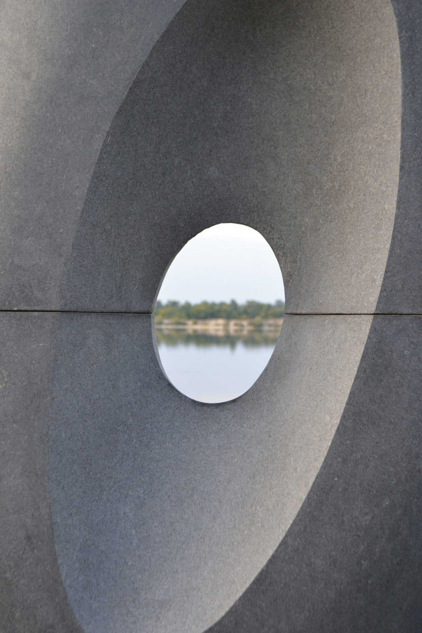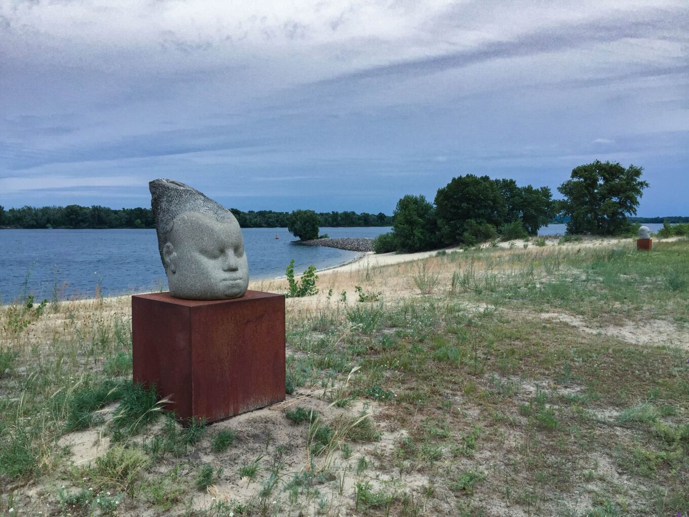 Почему еще для меня история Kanaal продолжилась в Каневе? Вервордт декларировал, что его проект станет синергией природы, бизнеса и искусства. Тому же принципу следует и Юрий Сташкив — каневские ландшафты с доминирующей горизонталью, арт-отель, лежащий у подножия Княжьей горы, скульптуры, щедрой рукой рассыпанные по берегу реки. Истины ради скажу, что тронул меня не этот бесспорно правильный вектор развития проекта — это уже отсылка к моему позднее включившемуся рацио. Задели меня местные малыши, играющие в прятки среди скульптур Роланда Хофта и Йосио Яги. Взволновал рыбак, тянувший лодку мимо работ Александра Дяченко и Валериана Джикия. Первые раз я увидела в нашей стране людей, которые умеют жить рядом с искусством, не будучи участниками творческих процессов. Они на бытовом уровне научились коммуницировать с произведениями искусства, не эмоционируя, а спокойно принимая их присутствие в каждом мгновении своей жизни. По большому счету каждый житель Канева с 2008 г. ближе к искусству, чем любой из киевских искусствоведов.