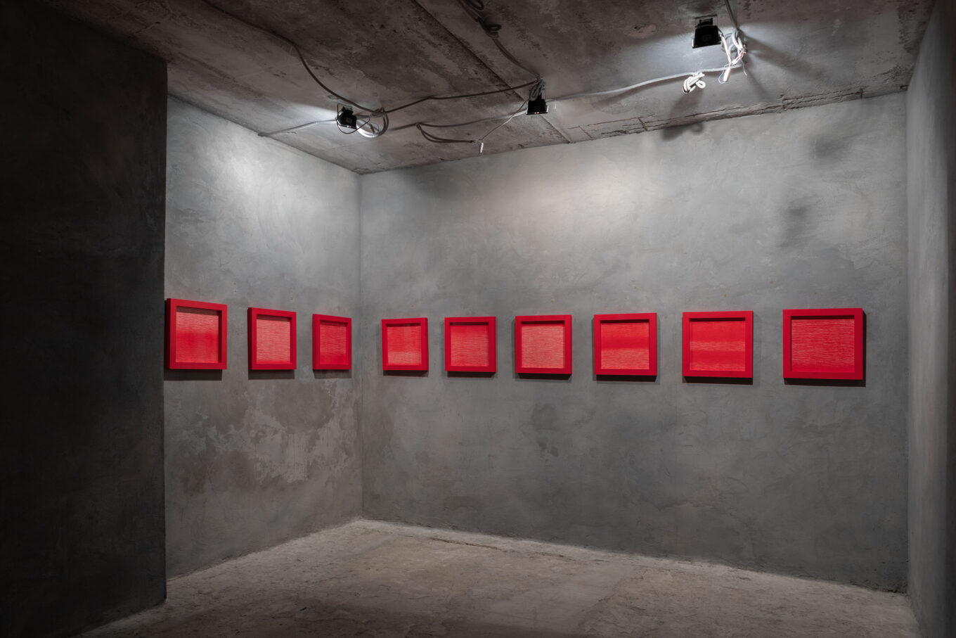А еще объединил для меня Kanaal и «ЧервонеЧорне» красный цвет, тот его оттенок, который называют иногда «парижский» или «вульгарный». Кстати, «вульгарный» на латыни означает «народный», то есть можно сказать, что это цвет каждого из нас. Первое, что бросается в глаза в одной из экспозиций Kanaal и магнетизирует — это оптическая монохромная композиция Джеймса Таррелла. Ее красный полыхает в интерьере правильного серого цвета, создавая в композиции пространственную глубину, которой в ней нет. Красной нитью проходит он через все выставки Kanaal, финализируясь в инсталляции Аниша Капура 1998 г. At the Edge of the World. Этот же народный красный, абсолютно нетипичный для Анны Мироновой, она обрушила на меня в галерее «ЧервонеЧорне». Я была к этому не готова.