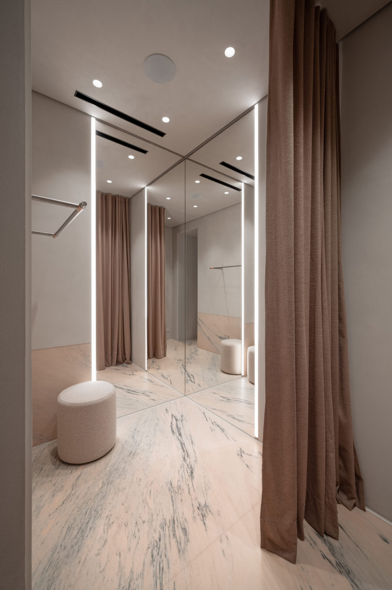 Для освітлення дзеркал примірочних використані вертикальні профілі, які дарують м’яке, розсіяне та рівномірне світло. Фото: Євген Авраменко