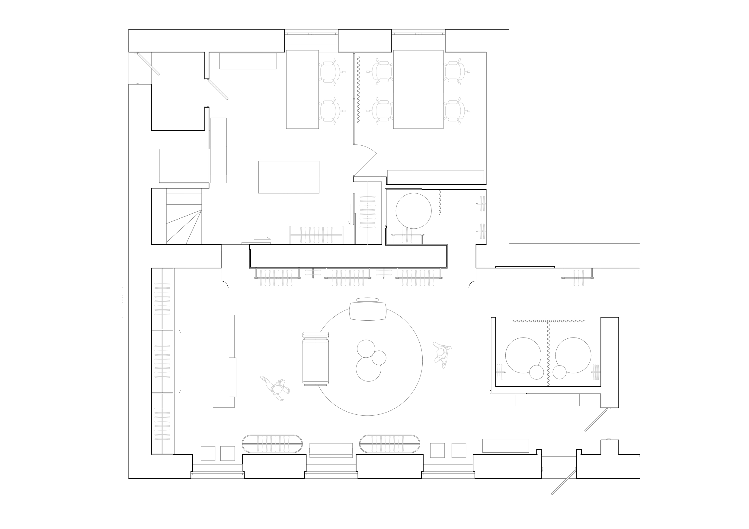 Простір площею 130 кв. м початково був розділений на 2 функціональні зони: власне велику виставкову кімнату-шоурум, у якій розміщувалися колекції, і «лаштунки» The COAT — студію-ательє, сховану від очей гостей. Наявний поділ дав можливість не закривати шоурум на час ремонту, хоча це і вимагало креативності в підходах від авторів проєкту та будівельників. Виставкова кімната продовжувала працювати майже весь час, поки велися роботи. The COAT закривався на кілька тижнів лише на фінальному етапі, щоб синхронізувати зміни у внутрішніх приміщеннях.
