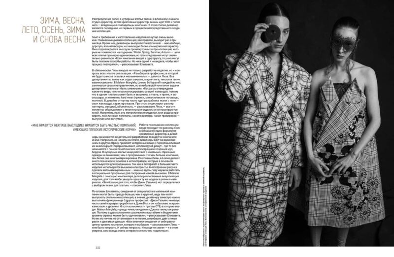 «Джон Гальяно чималу частину своєї кар’єри пропрацював у Будинку Dior, і він розпещений, спокушений якістю та рівнем. І хоча можливості групи OTB, до якої входить Maison Margiela, набагато нижчі, очікування у Джона такі, як раніше. Тому у двох компаніях із різними масштабами та бюджетами рівень стресу може бути однаковим», — розповідає Єлизавета. Але її це анітрохи не відштовхує й не лякає, а навпаки, дає стимул зростати та рухатися далі. «Мої знання й очікування від себе відповідають рівню компанії, яку я обираю, — розповідає Ліза, — мені було непросто. І зараз непросто. І простіше не стане — я в цьому впевнена, проте завжди дуже цікаво і є чим поділитися».