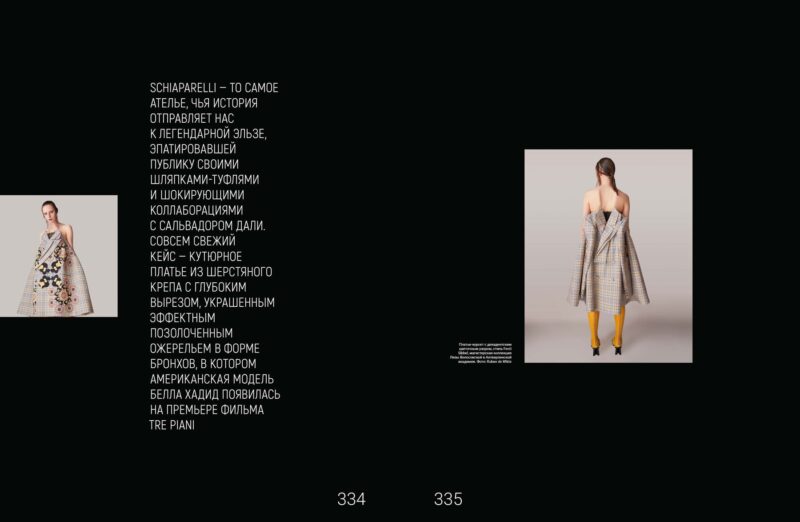 «Мені подобається heritage (спадщина), подобається бути частиною компаній, що мають глибоке історичне коріння, де можна перетворювати чи інтерпретувати на сучасний лад те, що було створено багато років тому», — ділиться Єлизавета. Саме такий досвід дизайнерка отримала в Schiaparelli. Особливість таких ательє в тому, що правила гри тут диктує не клієнт, а сама компанія, створюючи об’єкти бажання та продаючи мрію. І навіть в індивідуальній роботі з клієнтом останньому пропонують модифікацію вже наявних виробів.