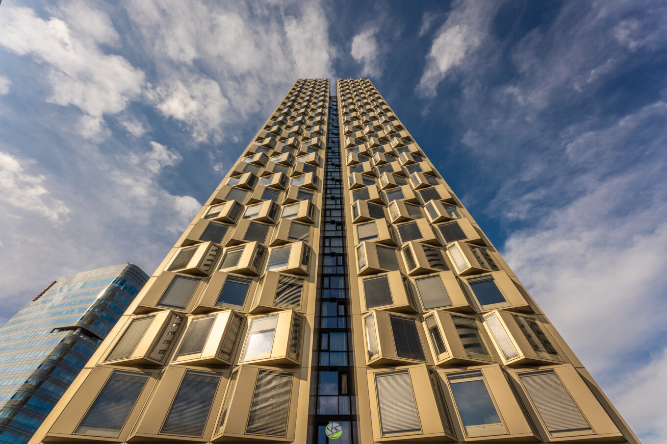 Вікна у квартирах житлового комплексу DC Tower 3 у Відні, спроєктованому Dietrich | Untertrifaller Architekten, захищені автоматичними керованими жалюзі. Фото: Martin Winkler