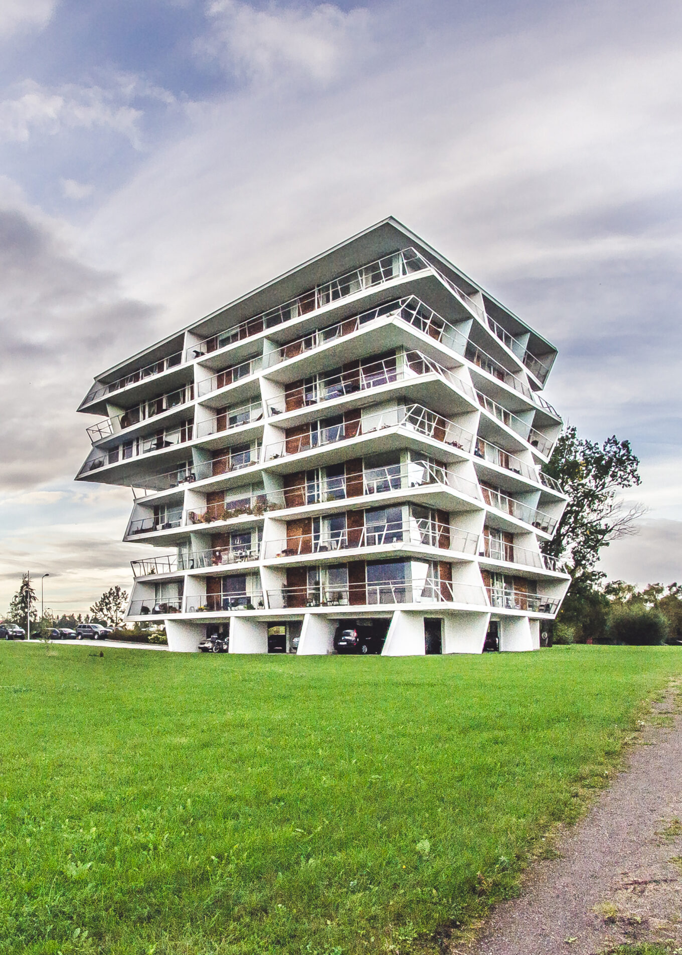 Сучасний житловий багатоквартирний будинок у Тарту (Естонія), побудований у 2008 році за проєктом архітекторів Atelier Thomas Pucher та Bramberger, які надихалися архітектурою модернізму та Ле Корбюзьє. Орієнтація будівлі й сонцерізи створюють збалансовану інсоляцію для кожної з квартир. Фото: Liisbet Jarviste
